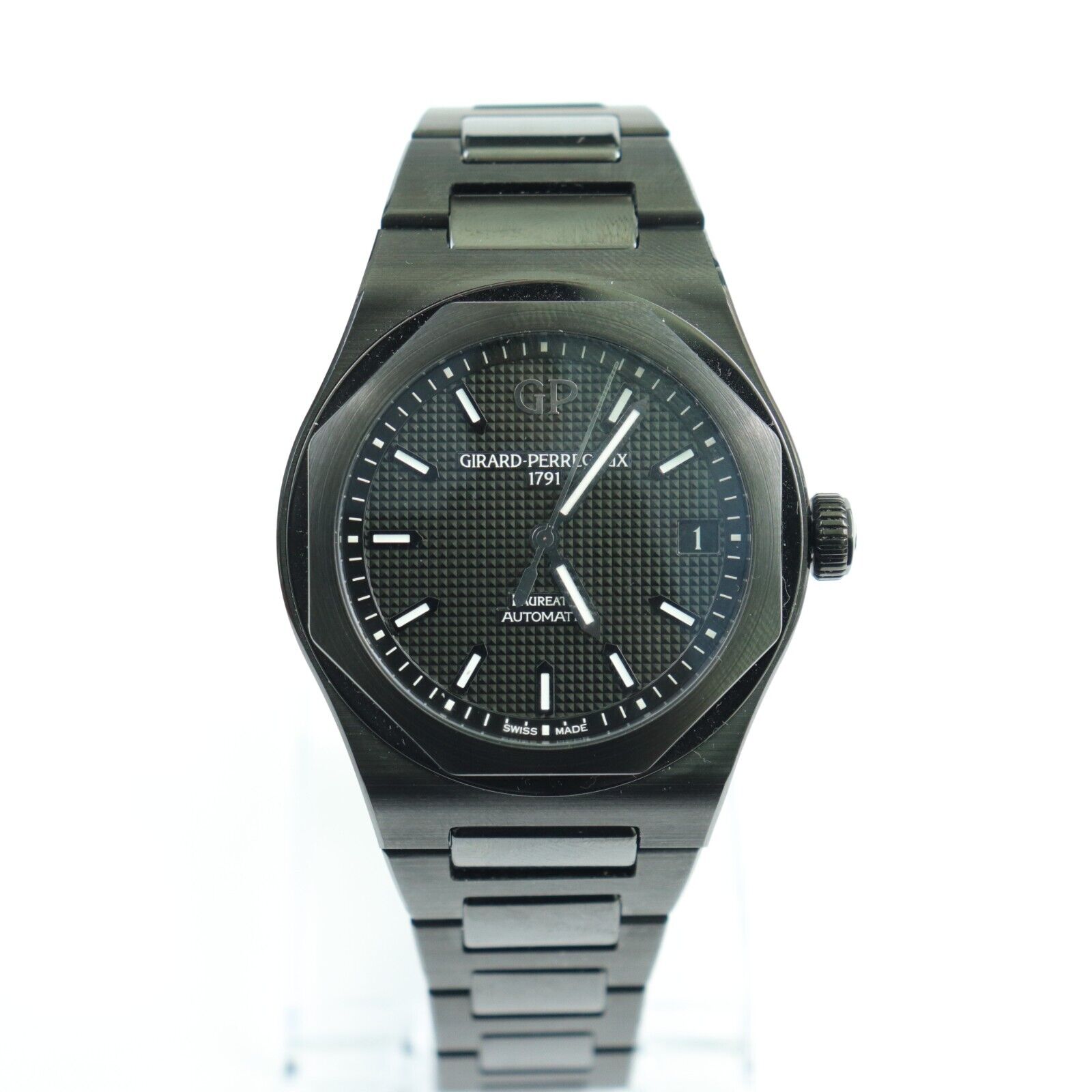This Girard Perregaux Laureato 81010-32-631-32A has a black baton dial and a bracelet strap. This Girard Perregaux has undergone a thorough inspection of water resistance, accuracy, functionality and condition to determine the level of reconditioning required to meet our strict standards. It has also been referenced against technical documents and manufacturer records where available to ensure authenticity and a clean history. All our watches have a 24-month warranty for your peace of mind.
