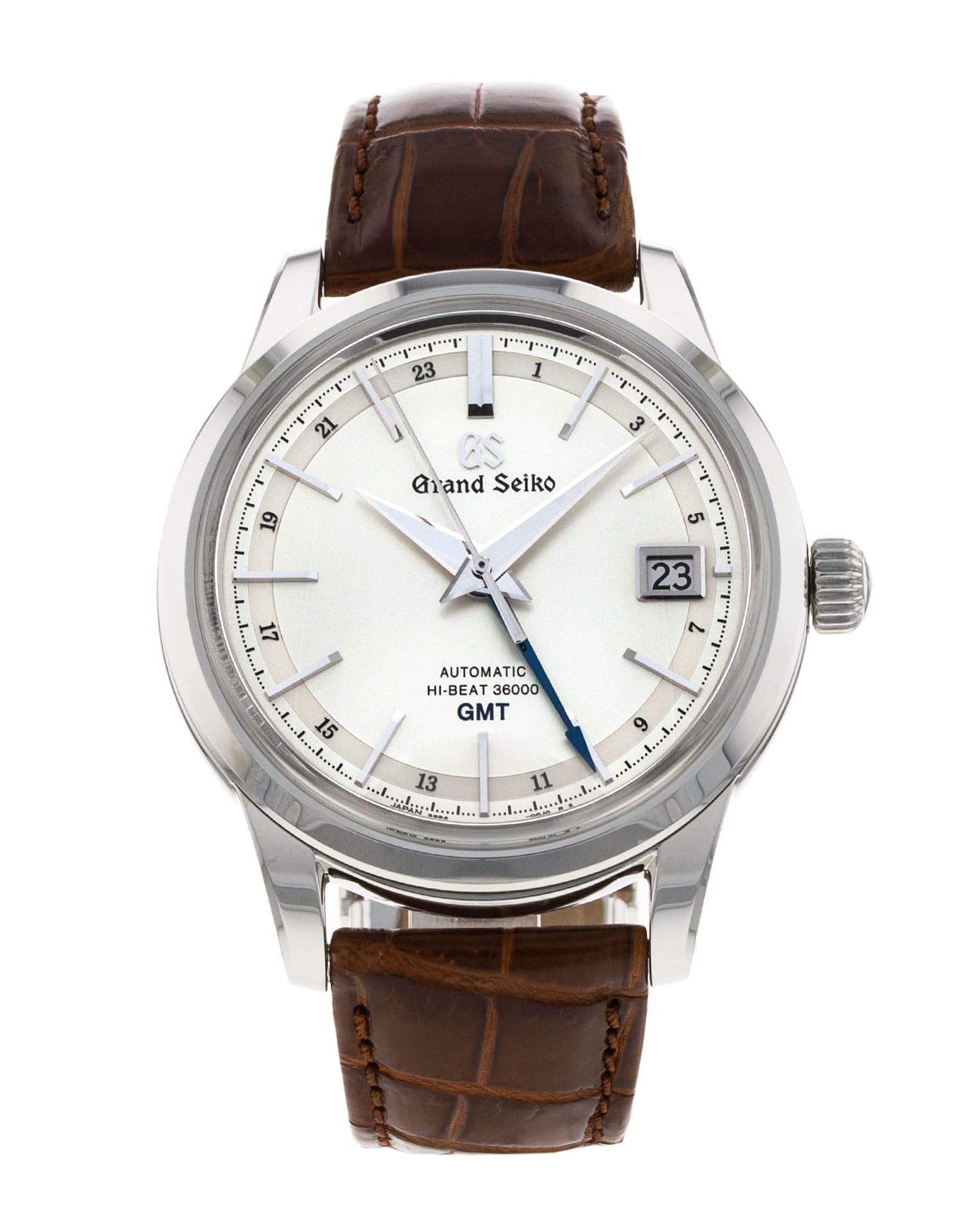 This Grand Seiko Hi-Beat 36000 GMT SBGJ217 has a silver baton dial and a leather strap. This Grand Seiko has undergone a thorough inspection of water resistance, accuracy, functionality and condition to determine the level of reconditioning required to meet our strict standards. It has also been referenced against technical documents and manufacturer records where available to ensure authenticity and a clean history. All our watches have a 24-month warranty for your peace of mind.