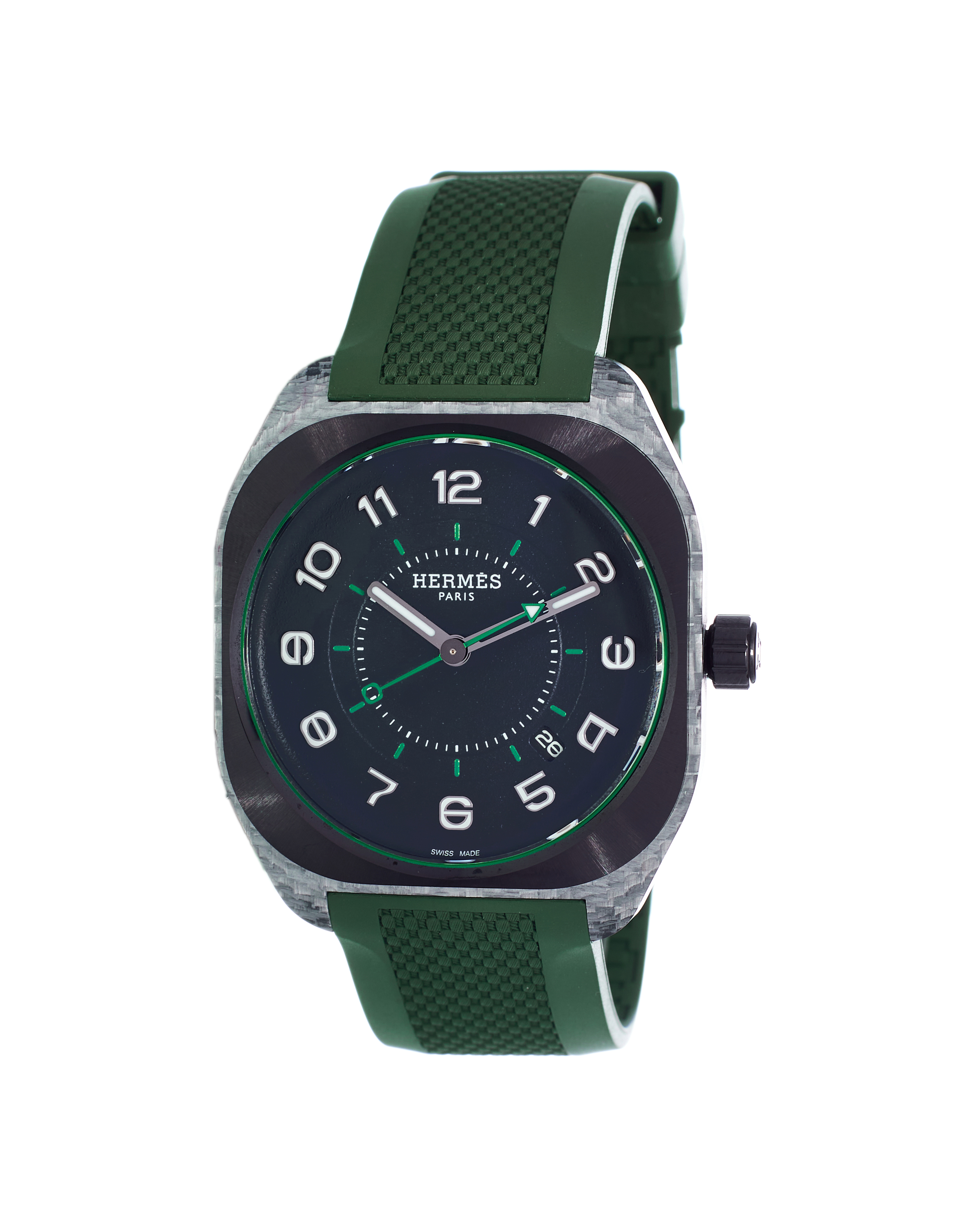 This Hermes H08 SP1.741A has a grey arabic dial and a rubber strap. This Hermes has undergone a thorough inspection of water resistance, accuracy, functionality and condition to determine the level of reconditioning required to meet our strict standards. It has also been referenced against technical documents and manufacturer records where available to ensure authenticity and a clean history. All our watches have a 24-month warranty for your peace of mind.