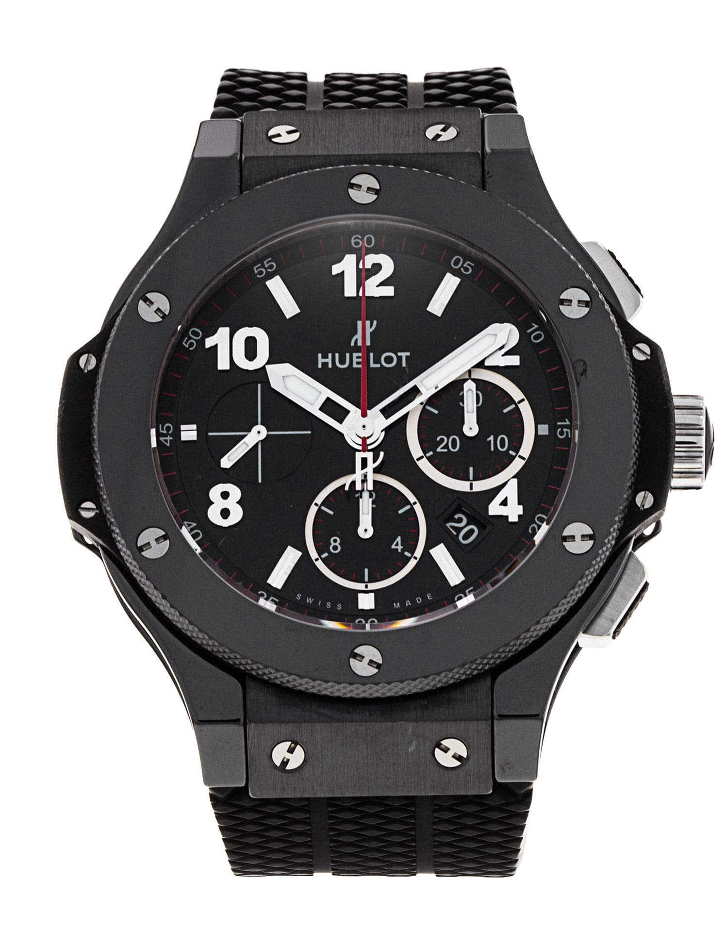 This Hublot Big Bang 301.CX.130.RX has a black arabic dial and a rubber strap. This Hublot has undergone a thorough inspection of water resistance, accuracy, functionality and condition to determine the level of reconditioning required to meet our strict standards. It has also been referenced against technical documents and manufacturer records where available to ensure authenticity and a clean history. All our watches have a 24-month warranty for your peace of mind.