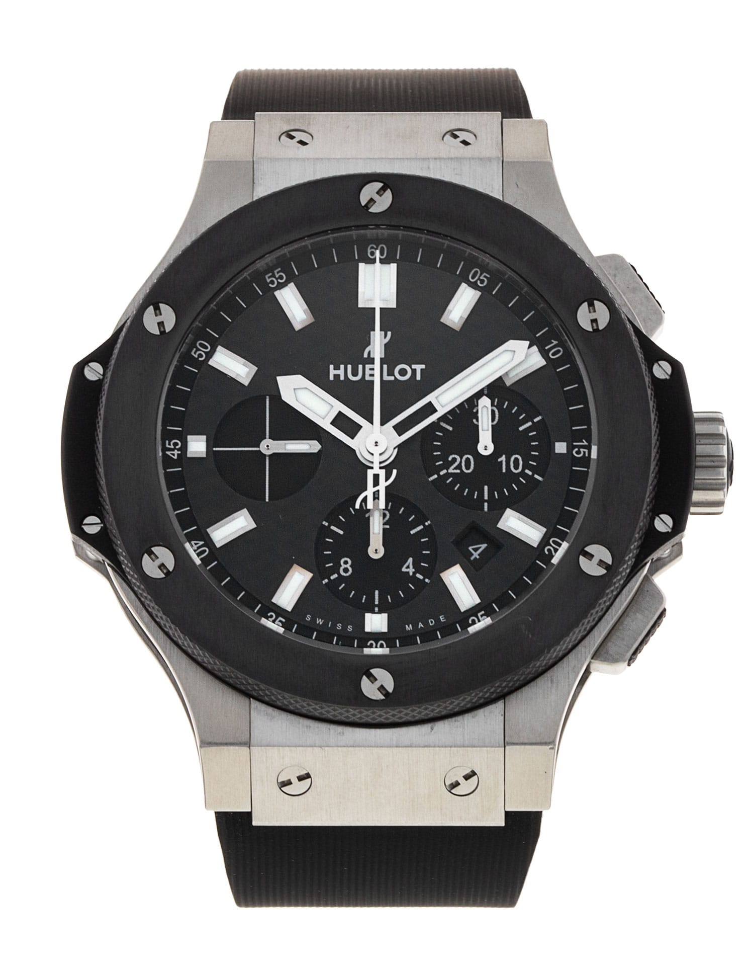 This Hublot Big Bang 301.SM.1770.RX has a black baton dial and a rubber strap. This Hublot has undergone a thorough inspection of water resistance, accuracy, functionality and condition to determine the level of reconditioning required to meet our strict standards. It has also been referenced against technical documents and manufacturer records where available to ensure authenticity and a clean history. All our watches have a 24-month warranty for your peace of mind.
