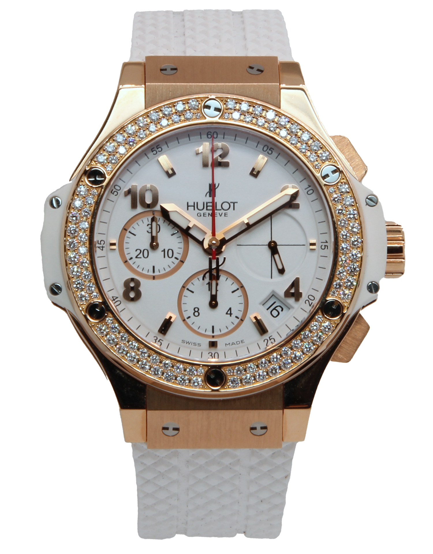 This Hublot Big Bang 341.PE.230.RW.114 has a white arabic dial and a rubber strap. This Hublot has undergone a thorough inspection of water resistance, accuracy, functionality and condition to determine the level of reconditioning required to meet our strict standards. It has also been referenced against technical documents and manufacturer records where available to ensure authenticity and a clean history. All our watches have a 24-month warranty for your peace of mind.