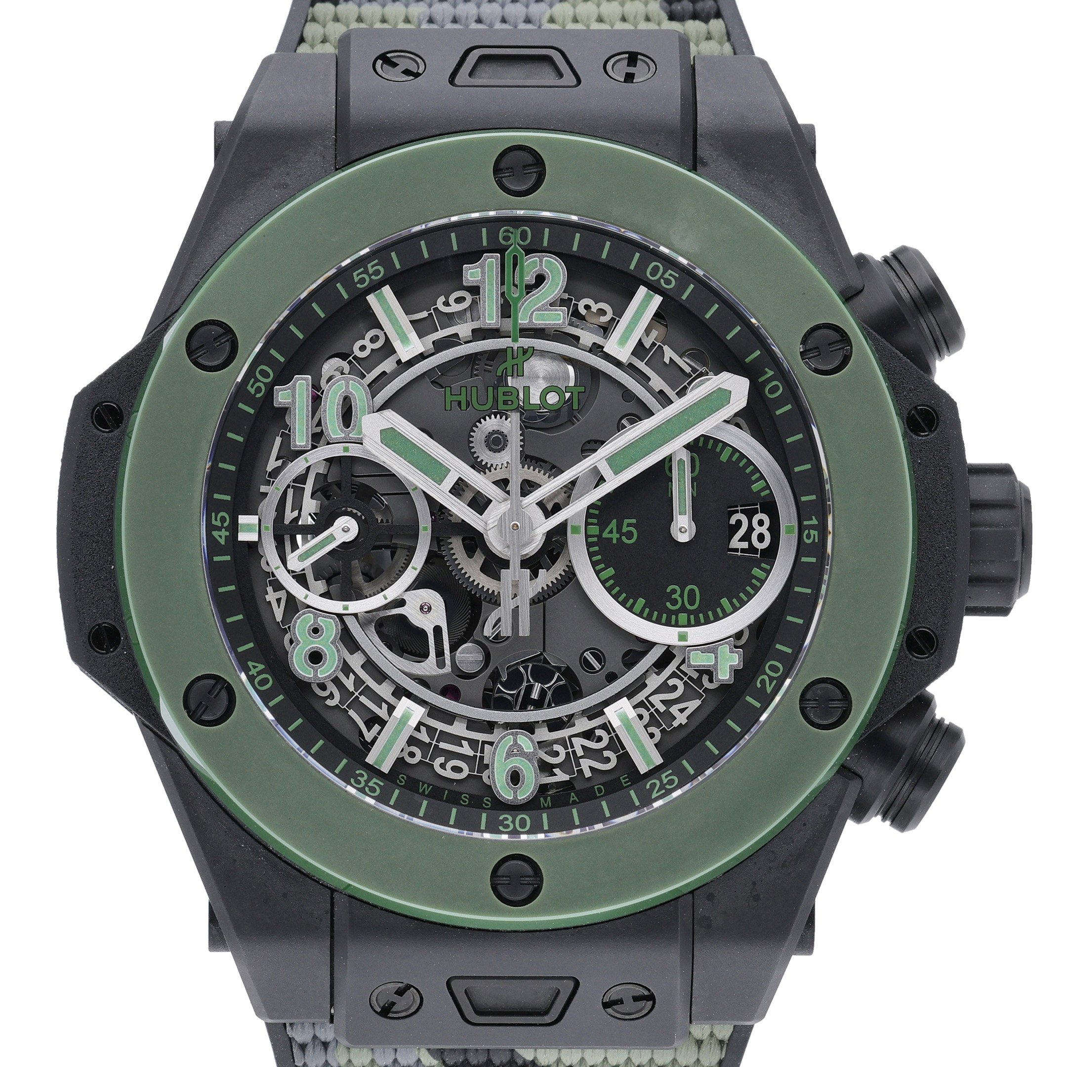 This Hublot Big Bang 441.CG.1199.RX.WOG23 has a skeleton black dial dial and a fabric strap. This Hublot has undergone a thorough inspection of water resistance, accuracy, functionality and condition to determine the level of reconditioning required to meet our strict standards. It has also been referenced against technical documents and manufacturer records where available to ensure authenticity and a clean history. All our watches have a 24-month warranty for your peace of mind.