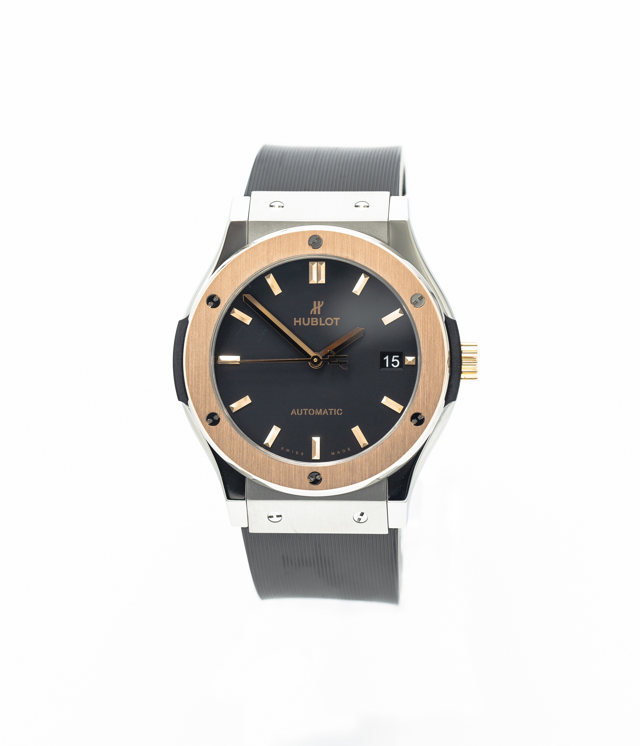 This Hublot Classic Fusion 511.NO.1181.RX has a black baton dial and a rubber strap. This Hublot has undergone a thorough inspection of water resistance, accuracy, functionality and condition to determine the level of reconditioning required to meet our strict standards. It has also been referenced against technical documents and manufacturer records where available to ensure authenticity and a clean history. All our watches have a 24-month warranty for your peace of mind.