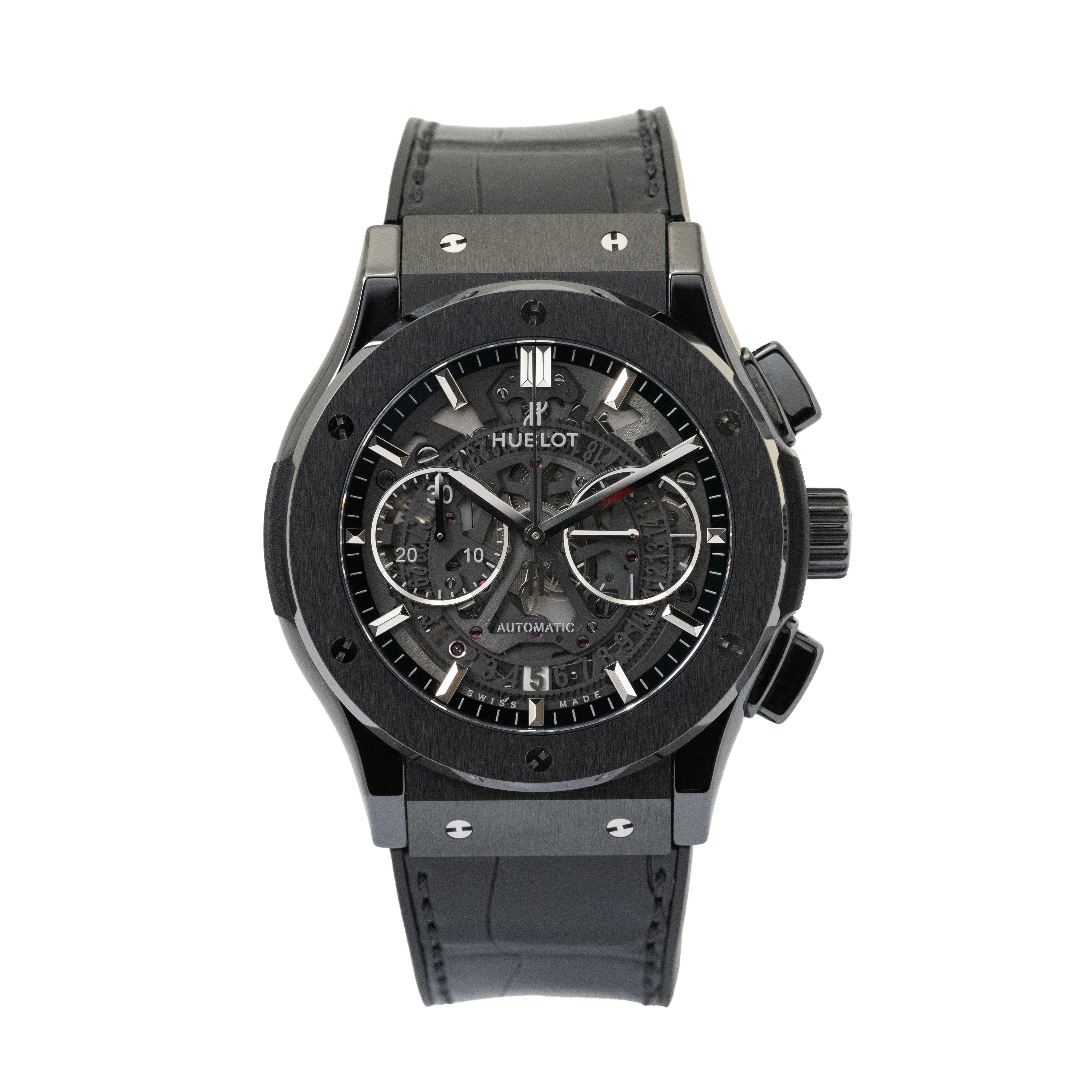 This Hublot Classic Fusion 525.CM.0170.LR has a skeleton dial and a leather strap. This Hublot has undergone a thorough inspection of water resistance, accuracy, functionality and condition to determine the level of reconditioning required to meet our strict standards. It has also been referenced against technical documents and manufacturer records where available to ensure authenticity and a clean history. All our watches have a 24-month warranty for your peace of mind.