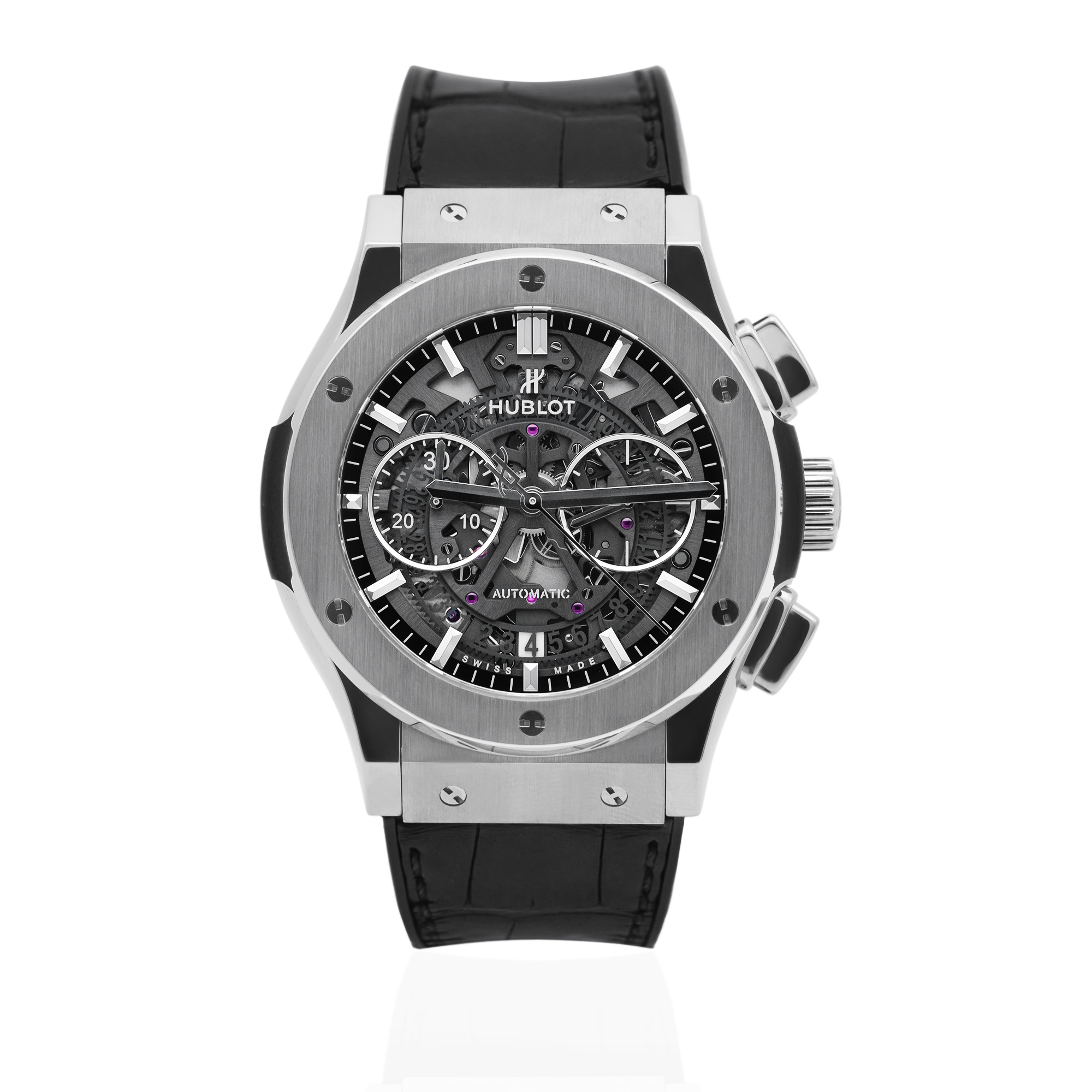This Hublot Classic Fusion 525.NX.0170.LR has a skeleton dial and a rubber strap. This Hublot has undergone a thorough inspection of water resistance, accuracy, functionality and condition to determine the level of reconditioning required to meet our strict standards. It has also been referenced against technical documents and manufacturer records where available to ensure authenticity and a clean history. All our watches have a 24-month warranty for your peace of mind.