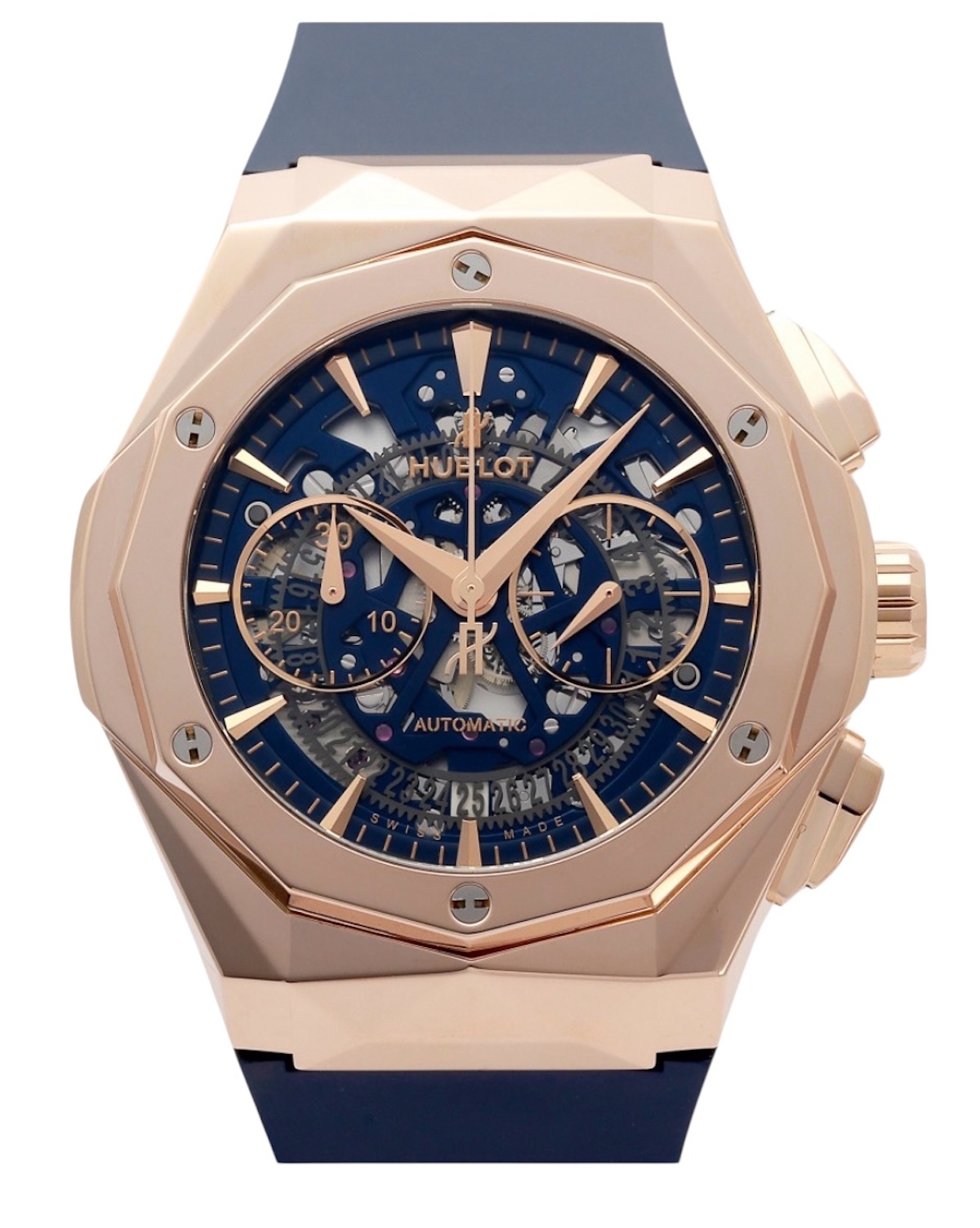 This Hublot Classic Fusion 525.OX.5180.RX.ORL21 has a skeleton dial and a rubber strap. This Hublot has undergone a thorough inspection of water resistance, accuracy, functionality and condition to determine the level of reconditioning required to meet our strict standards. It has also been referenced against technical documents and manufacturer records where available to ensure authenticity and a clean history. All our watches have a 24-month warranty for your peace of mind.