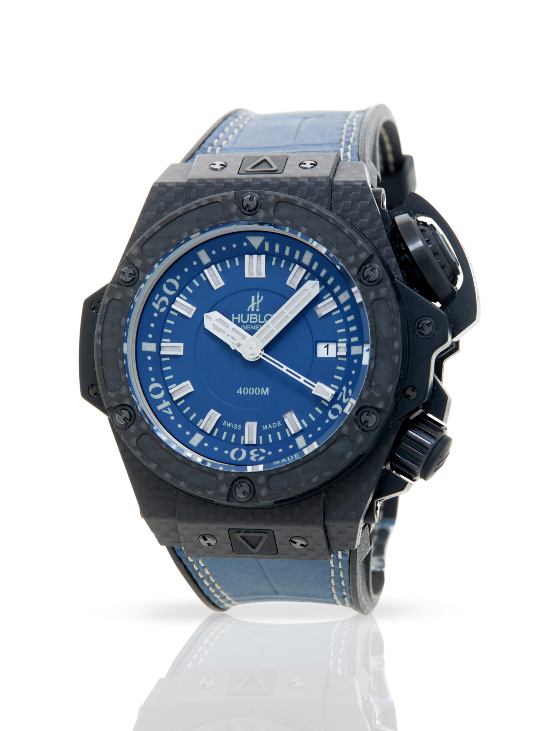 This Hublot King Power 731.QX.5190.GR has a blue dial and a leather strap. This Hublot has undergone a thorough inspection of water resistance, accuracy, functionality and condition to determine the level of reconditioning required to meet our strict standards. It has also been referenced against technical documents and manufacturer records where available to ensure authenticity and a clean history. All our watches have a 24-month warranty for your peace of mind.