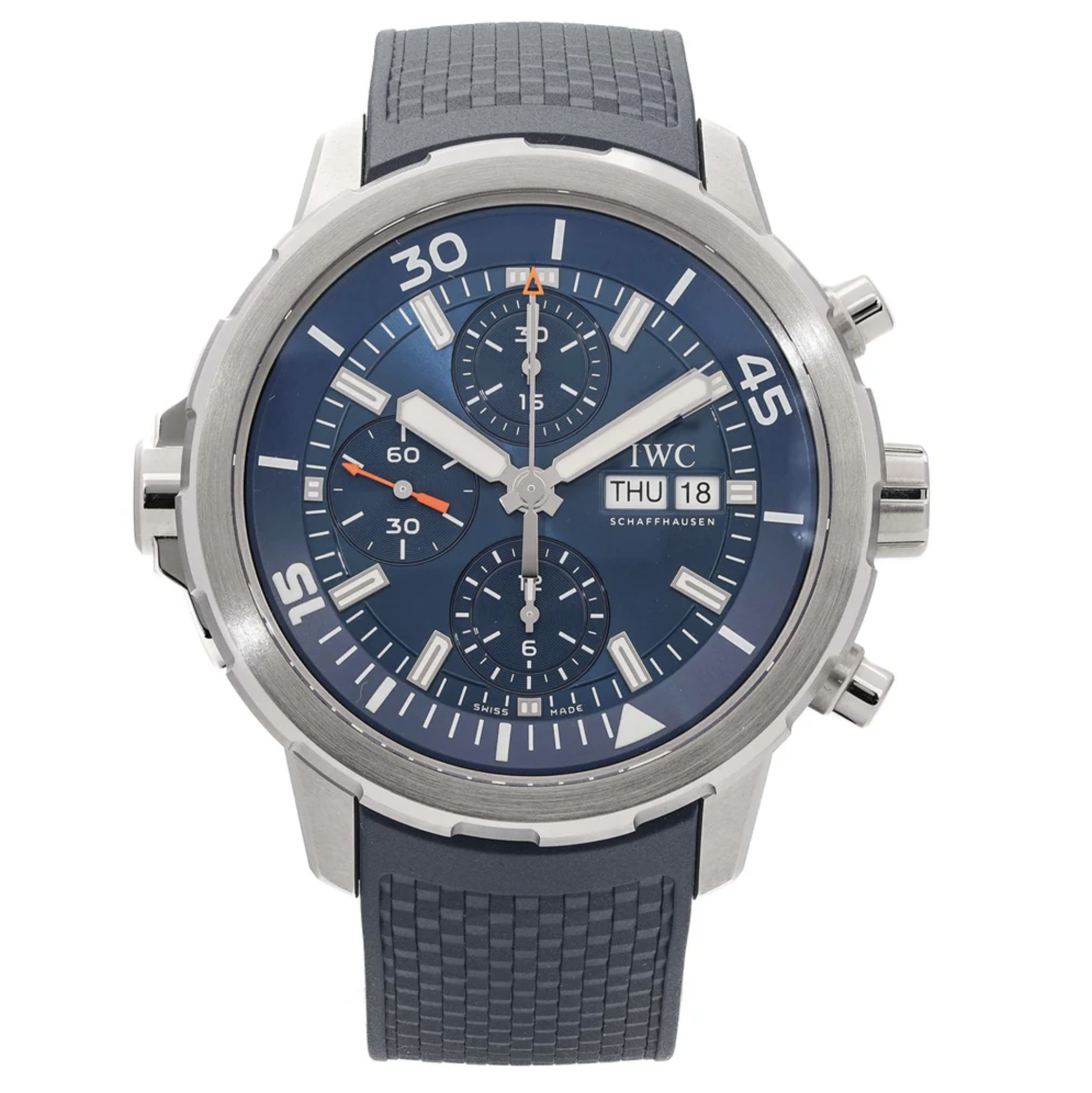 This IWC Aquatimer IW376806 has a blue baton dial and a rubber strap. This IWC has undergone a thorough inspection of accuracy, functionality and condition at our IWC certified service centre to determine the level of reconditioning required to meet our strict standards. It has also been checked against our records to ensure authenticity. Our watches have a 24-month warranty for your peace of mind, in conjunction with any remaining manufacturer’s warranty from new or from service.