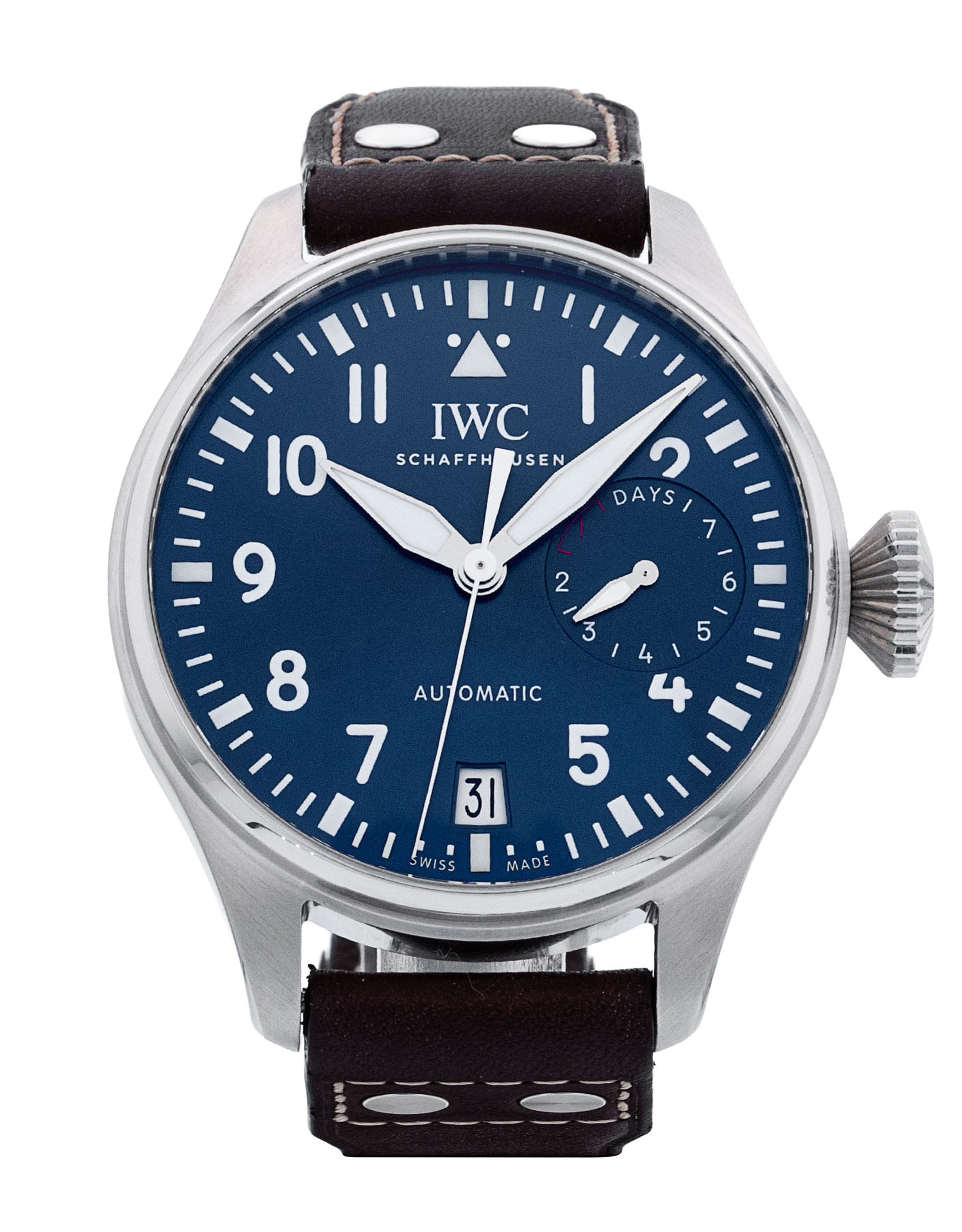 This IWC Big Pilot's Le Petit Prince IW501002 has a blue arabic dial and a leather strap. This IWC has undergone a thorough inspection of accuracy, functionality and condition at our IWC certified service centre to determine the level of reconditioning required to meet our strict standards. It has also been checked against our records to ensure authenticity. All our watches have a 24-month warranty for your peace of mind.