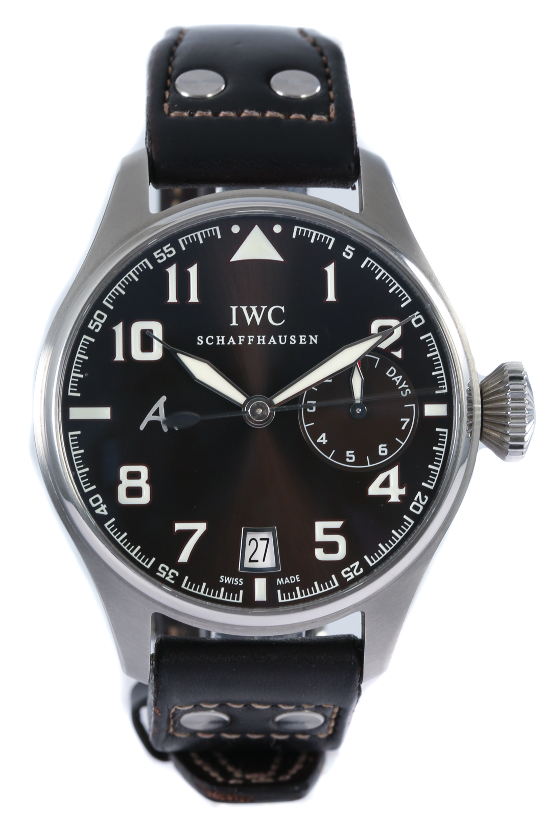 This IWC Big Pilot's IW500422 has a brown arabic dial and a leather strap. This IWC has undergone a thorough inspection of accuracy, functionality and condition at our IWC certified service centre to determine the level of reconditioning required to meet our strict standards. It has also been checked against our records to ensure authenticity. All our watches have a 24-month warranty for your peace of mind.