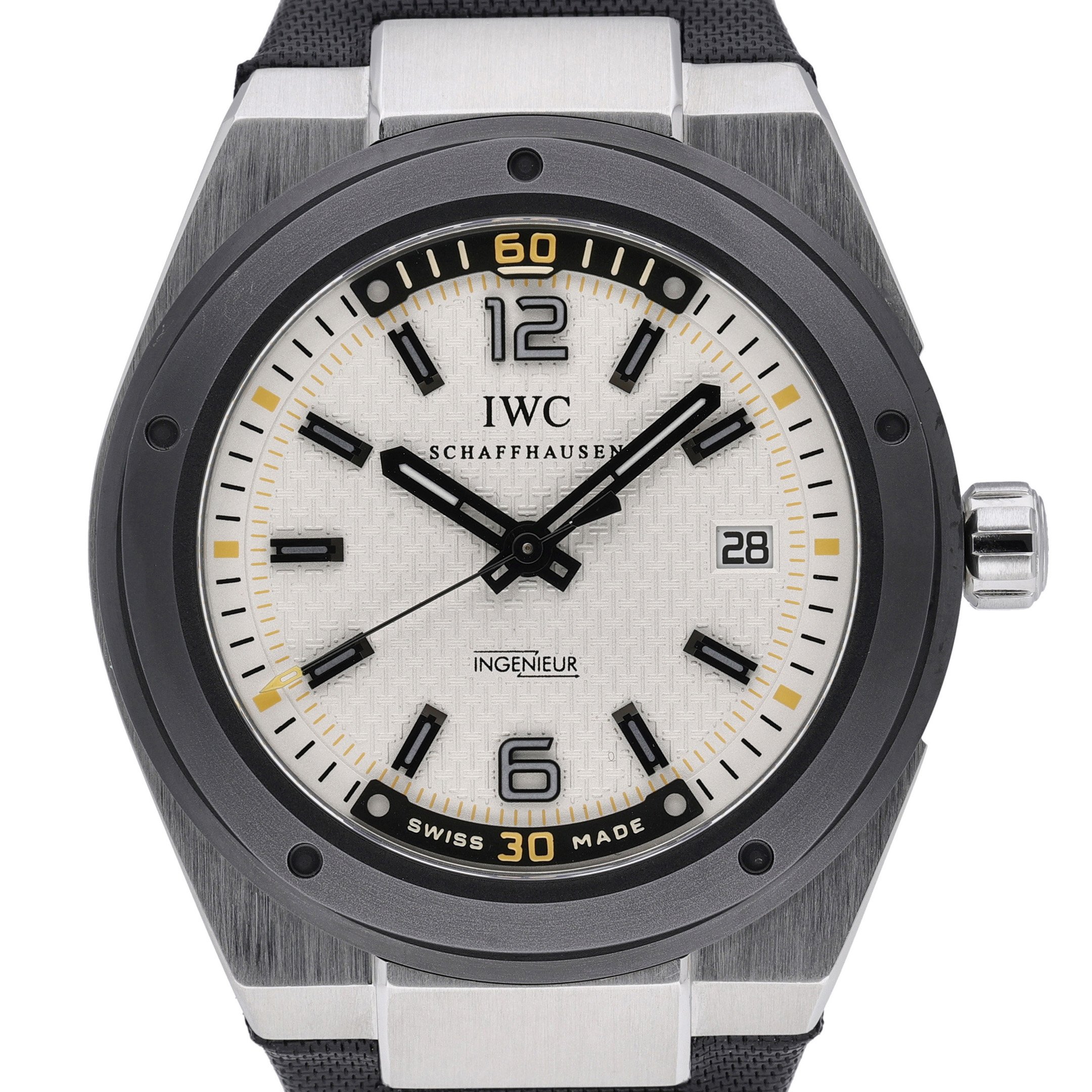 This IWC Ingenieur IW323402 has a ivory baton dial and a fabric strap. This IWC has undergone a thorough inspection of accuracy, functionality and condition at our IWC certified service centre to determine the level of reconditioning required to meet our strict standards. It has also been checked against our records to ensure authenticity. All our watches have a 24-month warranty for your peace of mind.
