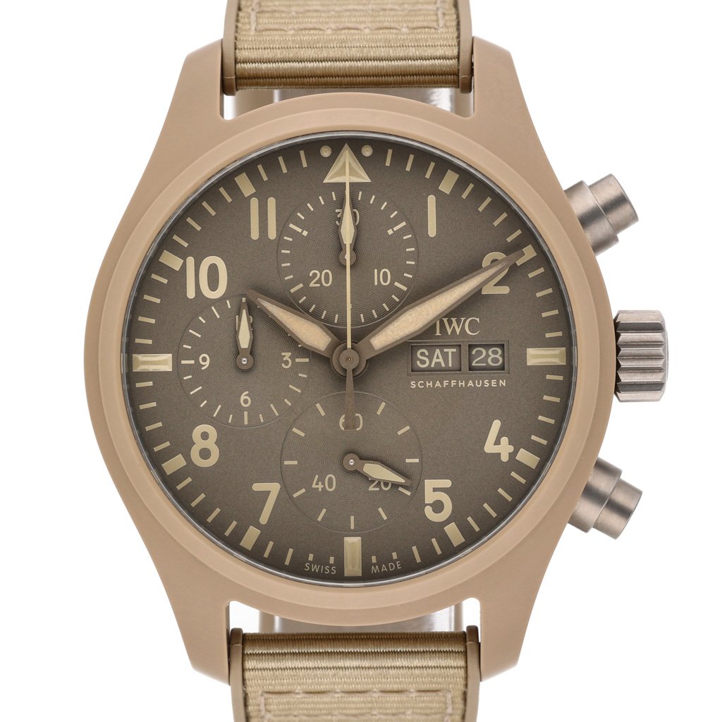 This IWC Pilot's Chrono IW389402 has a brown arabic dial and a fabric strap. This IWC has undergone a thorough inspection of accuracy, functionality and condition at our IWC certified service centre to determine the level of reconditioning required to meet our strict standards. It has also been checked against our records to ensure authenticity. Our watches have a 24-month warranty for your peace of mind, in conjunction with any remaining manufacturer’s warranty from new or from service.