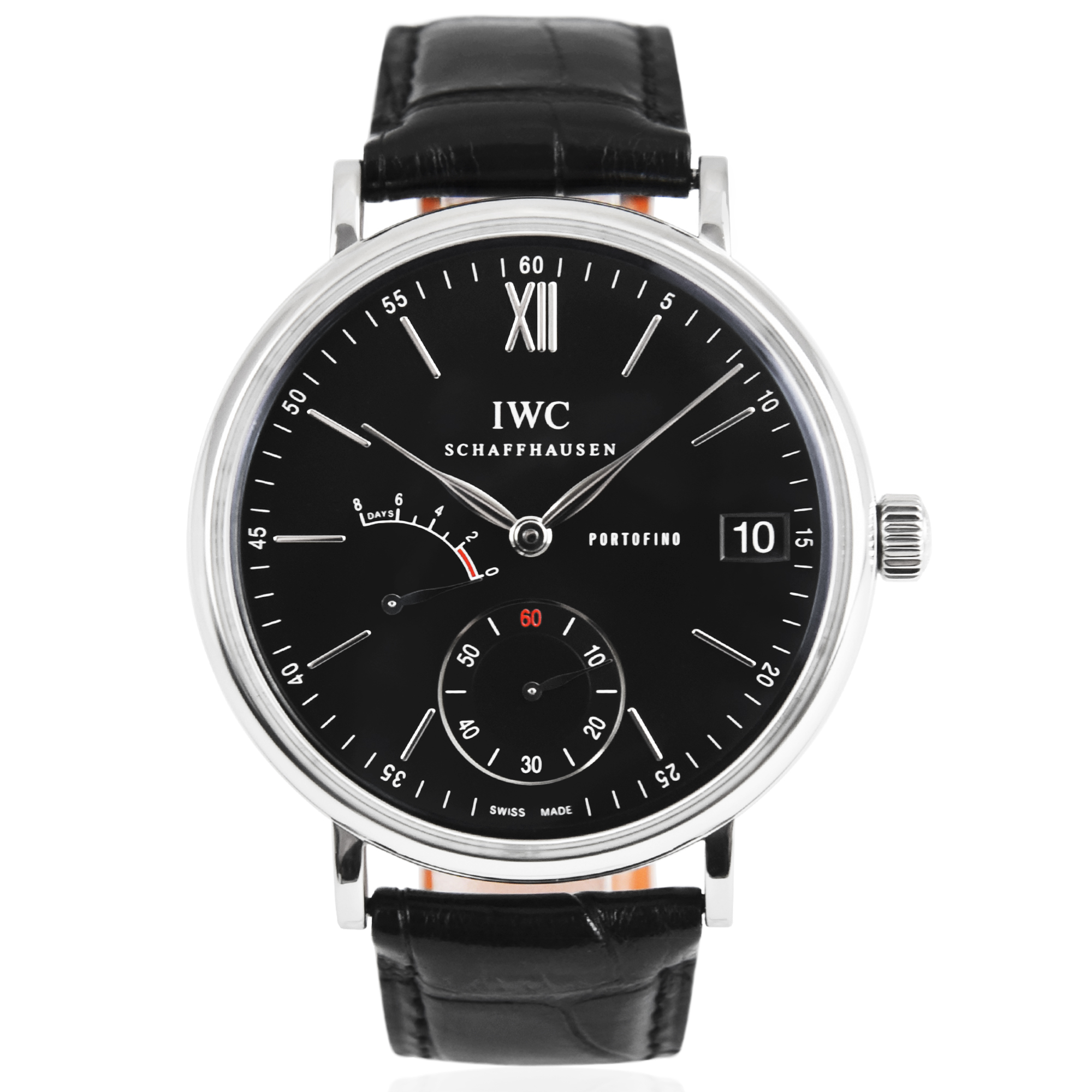 This IWC Portofino Hand-Wound IW510102 has a black baton dial and a leather strap. This IWC has undergone a thorough inspection of accuracy, functionality and condition at our IWC certified service centre to determine the level of reconditioning required to meet our strict standards. It has also been checked against our records to ensure authenticity. All our watches have a 24-month warranty for your peace of mind.