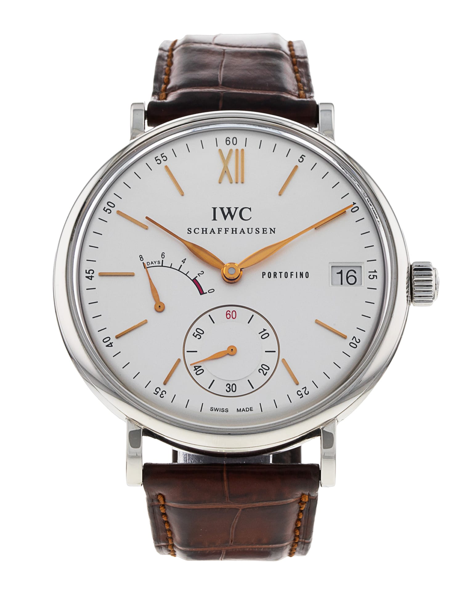 This IWC Portofino Hand-Wound IW510103 has a silver baton dial and a leather strap. This IWC has undergone a thorough inspection of accuracy, functionality and condition at our IWC certified service centre to determine the level of reconditioning required to meet our strict standards. It has also been checked against our records to ensure authenticity. All our watches have a 24-month warranty for your peace of mind.