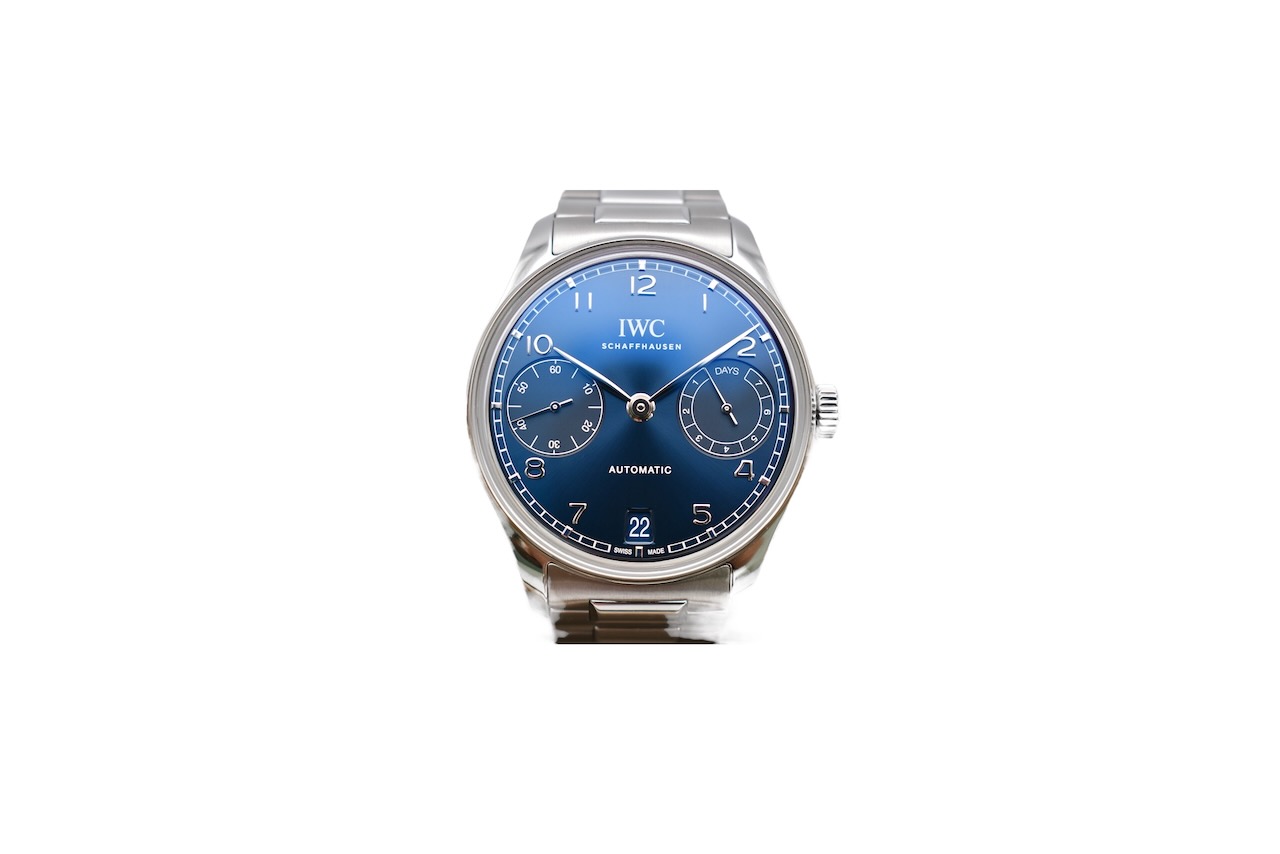 This IWC Portugieser Automatic IW501704 has a blue arabic dial and a bracelet strap. This IWC has undergone a thorough inspection of accuracy, functionality and condition at our IWC certified service centre to determine the level of reconditioning required to meet our strict standards. It has also been checked against our records to ensure authenticity. Our watches have a 24-month warranty for your peace of mind, in conjunction with any remaining manufacturer’s warranty from new or from service.
