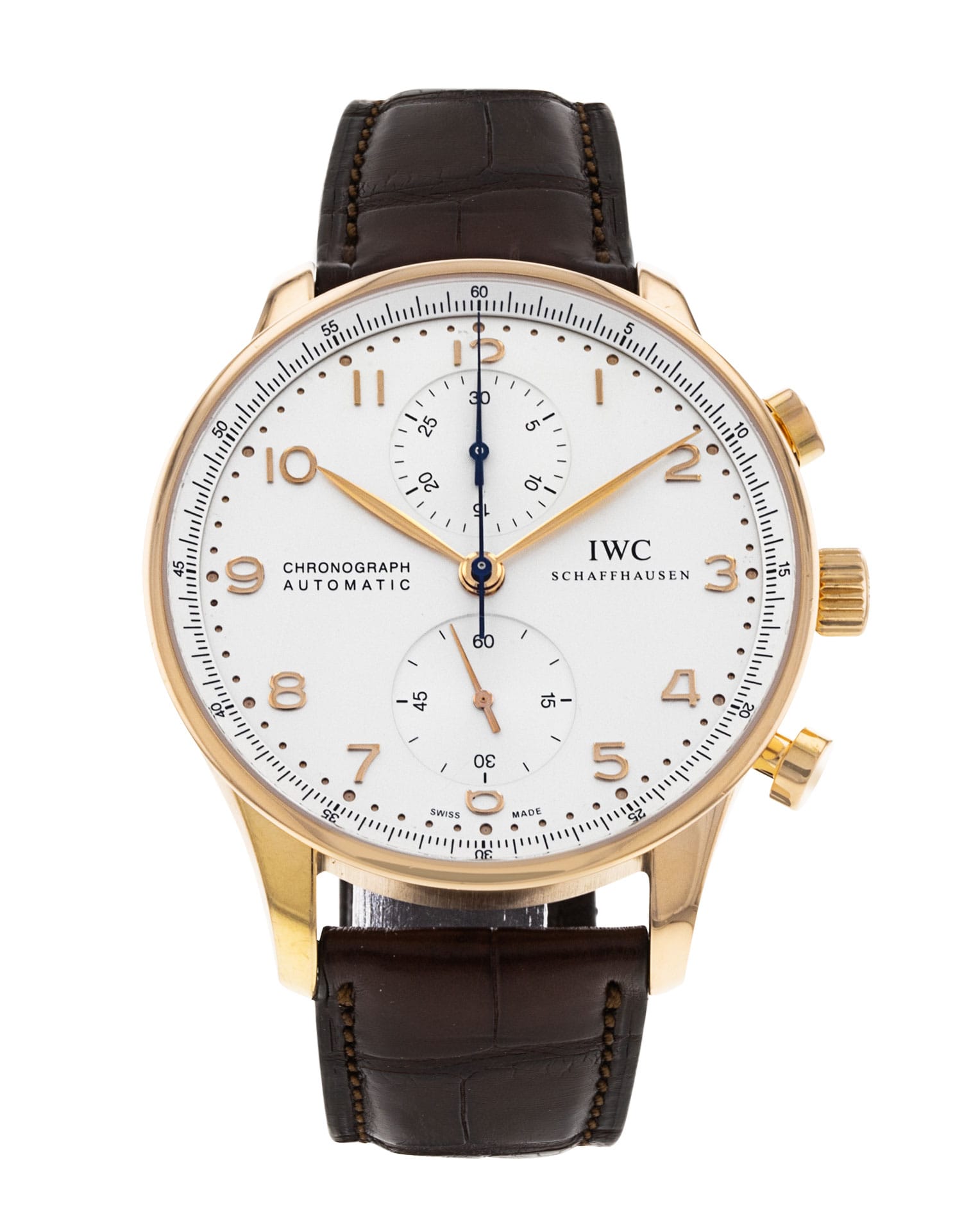 This IWC Portugieser Chrono IW371480 has a silver arabic dial and a leather strap. This IWC has undergone a thorough inspection of accuracy, functionality and condition at our IWC certified service centre to determine the level of reconditioning required to meet our strict standards. It has also been checked against our records to ensure authenticity. All our watches have a 24-month warranty for your peace of mind.