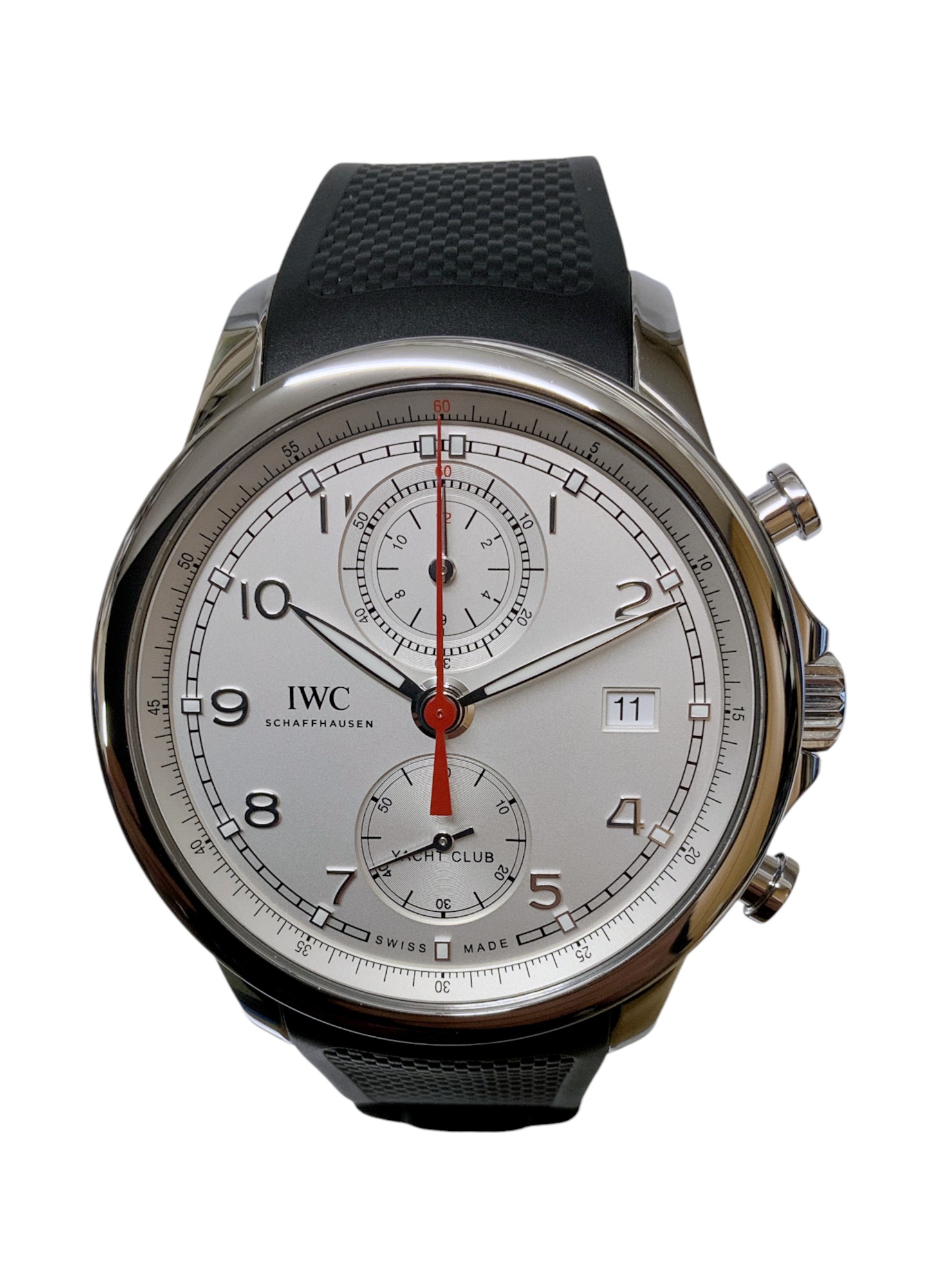 This IWC Portugieser Yacht Club IW390502 has a silver arabic dial and a rubber strap. This IWC has undergone a thorough inspection of accuracy, functionality and condition at our IWC certified service centre to determine the level of reconditioning required to meet our strict standards. It has also been checked against our records to ensure authenticity. Our watches have a 24-month warranty for your peace of mind, in conjunction with any remaining manufacturer’s warranty from new or from service.