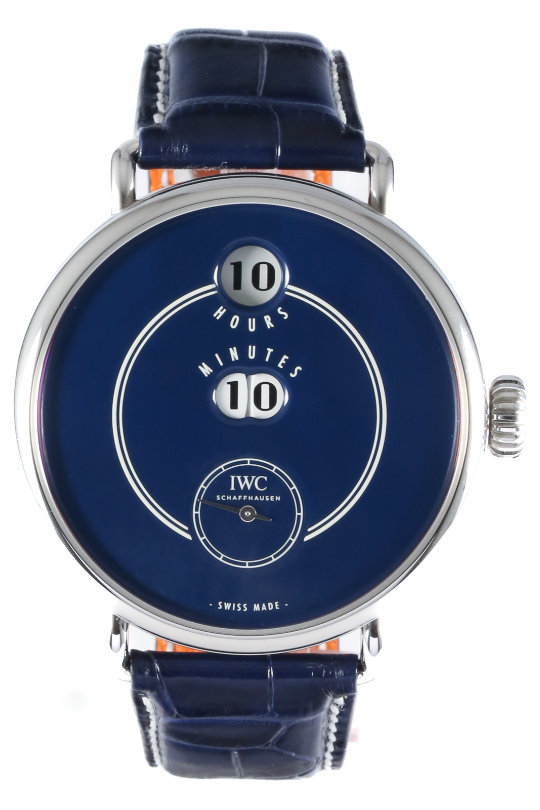 This IWC Tribute to Pallweber Edition IW505003 has a blue dial and a leather strap. This IWC has undergone a thorough inspection of accuracy, functionality and condition at our IWC certified service centre to determine the level of reconditioning required to meet our strict standards. It has also been checked against our records to ensure authenticity. All our watches have a 24-month warranty for your peace of mind.
