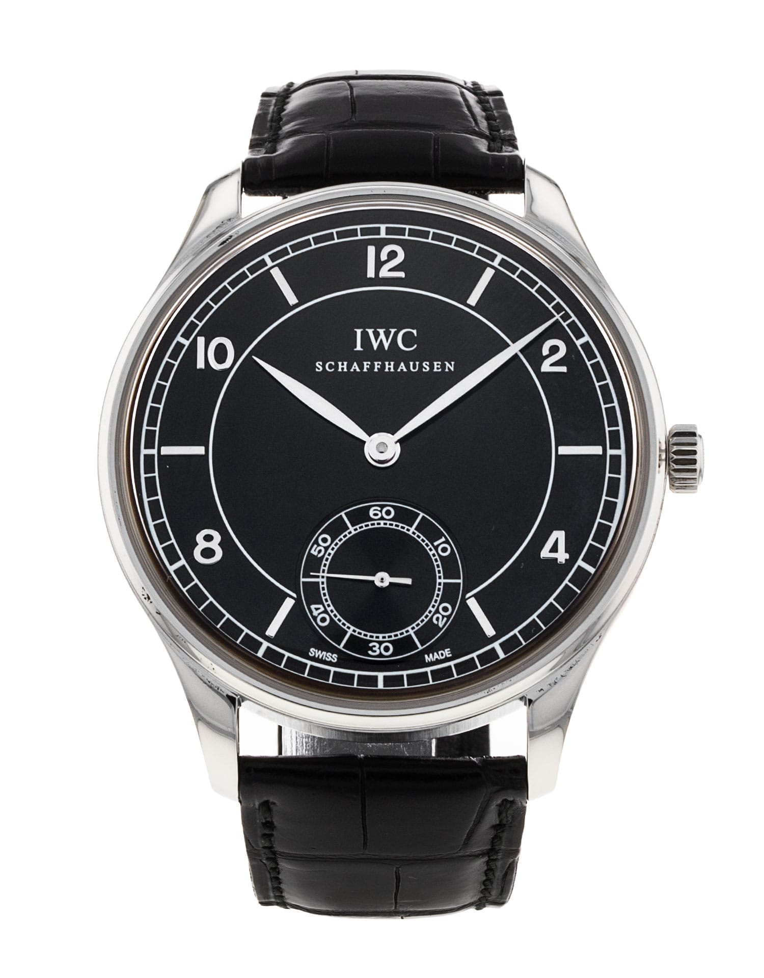This IWC Vintage Portuguese IW544501 has a black arabic dial and a leather strap. This IWC has undergone a thorough inspection of accuracy, functionality and condition at our IWC certified service centre to determine the level of reconditioning required to meet our strict standards. It has also been checked against our records to ensure authenticity. All our watches have a 24-month warranty for your peace of mind.