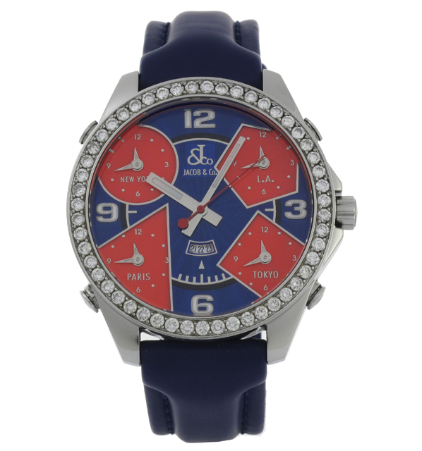 This Jacob and Co 47mm JC19 has a blue quarter arabic dial and a leather strap. This Jacob and Co has undergone a thorough inspection of accuracy, functionality and condition to determine the level of reconditioning required to meet our strict standards. It has also been referenced against technical documents and manufacturer records where available to ensure authenticity and a clean history. All our watches have a 24-month warranty for your peace of mind.
