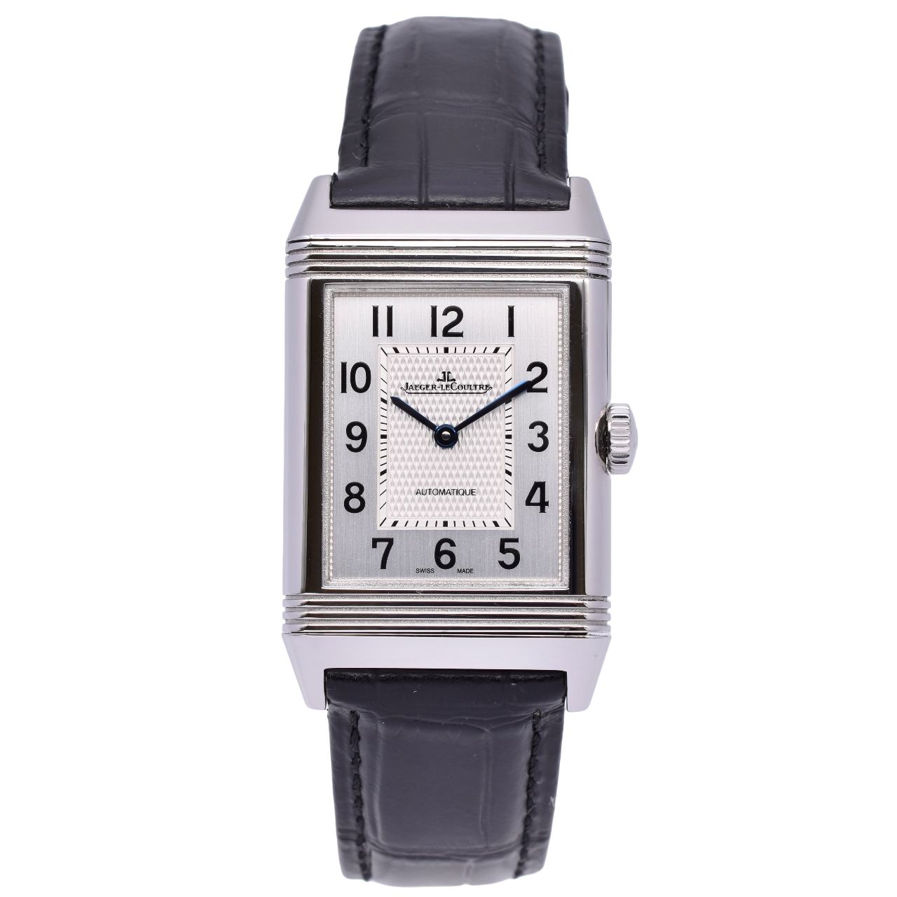 This Jaeger-LeCoultre Reverso Classique 3828420 has a silver arabic dial and a leather strap. This Jaeger-LeCoultre has undergone a thorough inspection of accuracy, functionality and condition at our Jaeger-LeCoultre certified service centre to determine the level of reconditioning required to meet our strict standards. It has also been checked against our records to ensure authenticity. Our watches have a 24-month warranty for your peace of mind, in conjunction with any remaining manufacturer’s warranty from new or from service.