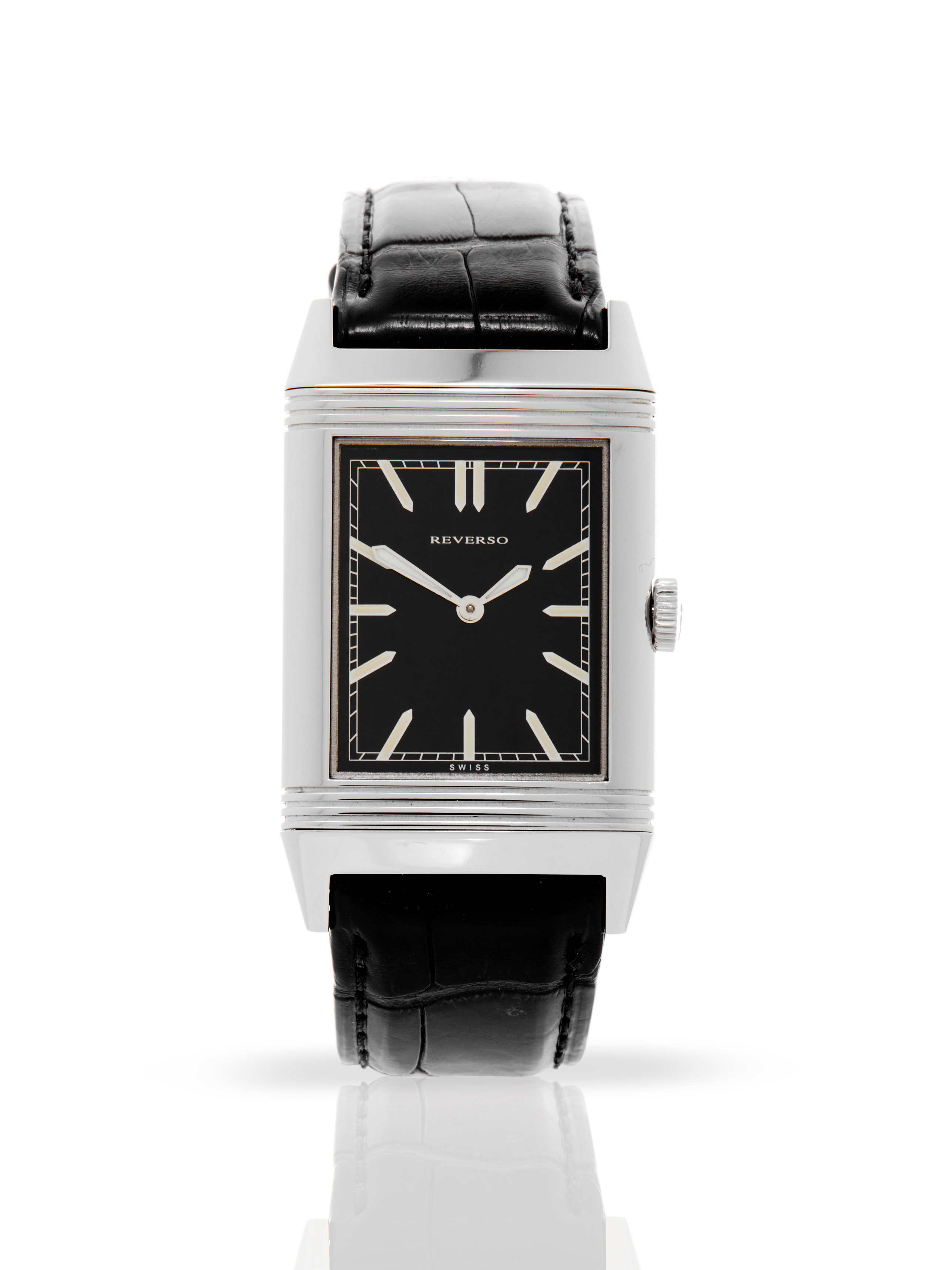 This Jaeger-LeCoultre Reverso Ultra Thin Tribute to 1931 2788570 has a black baton dial and a leather strap. This Jaeger-LeCoultre has undergone a thorough inspection of accuracy, functionality and condition at our Jaeger-LeCoultre certified service centre to determine the level of reconditioning required to meet our strict standards. It has also been checked against our records to ensure authenticity. All our watches have a 24-month warranty for your peace of mind.