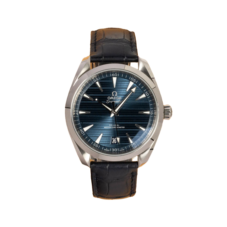 This Omega Aqua Terra 150m Gents 220.13.41.21.03.003 has a blue baton dial and a leather strap. This Omega has undergone a thorough inspection of accuracy, functionality and condition at our Omega certified service centre to determine the level of reconditioning required to meet our strict standards. It has also been checked against our records to ensure authenticity. Our watches have a 24-month warranty for your peace of mind, in conjunction with any remaining manufacturer’s warranty from new or from service.