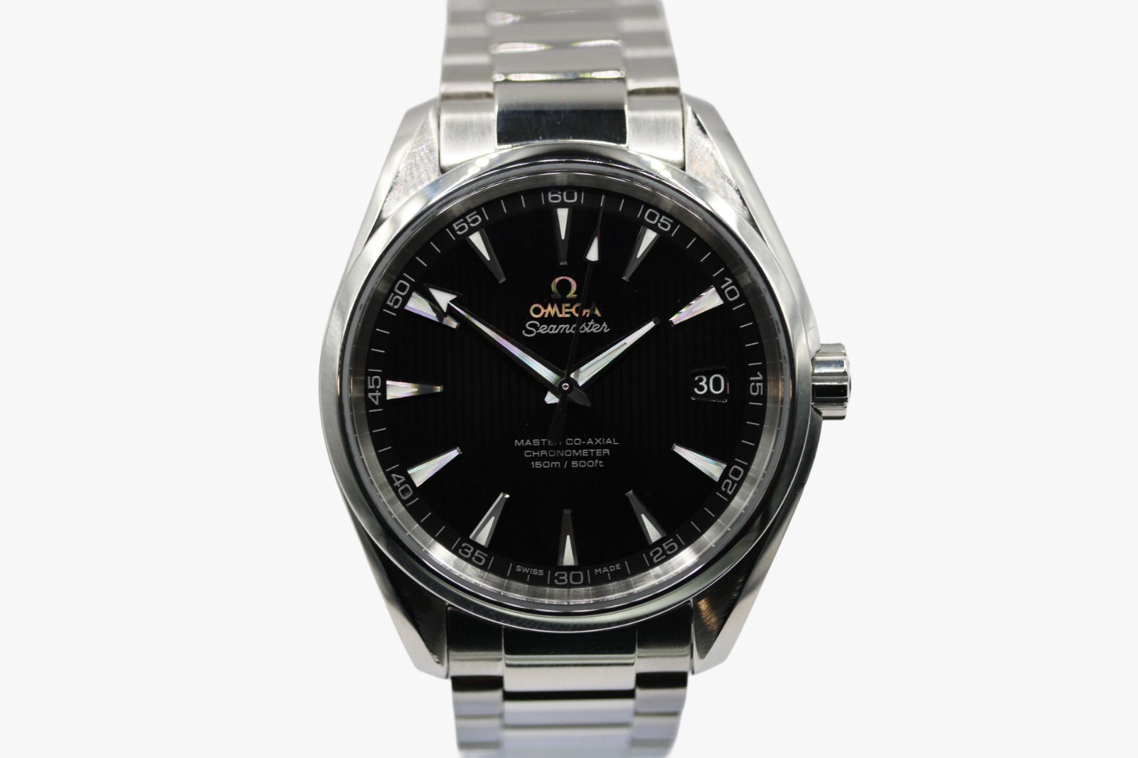 This Omega Aqua Terra 150m Gents 231.10.42.21.01.003 has a black baton dial and a bracelet strap. This Omega has undergone a thorough inspection of accuracy, functionality and condition at our Omega certified service centre to determine the level of reconditioning required to meet our strict standards. It has also been checked against our records to ensure authenticity. All our watches have a 24-month warranty for your peace of mind.