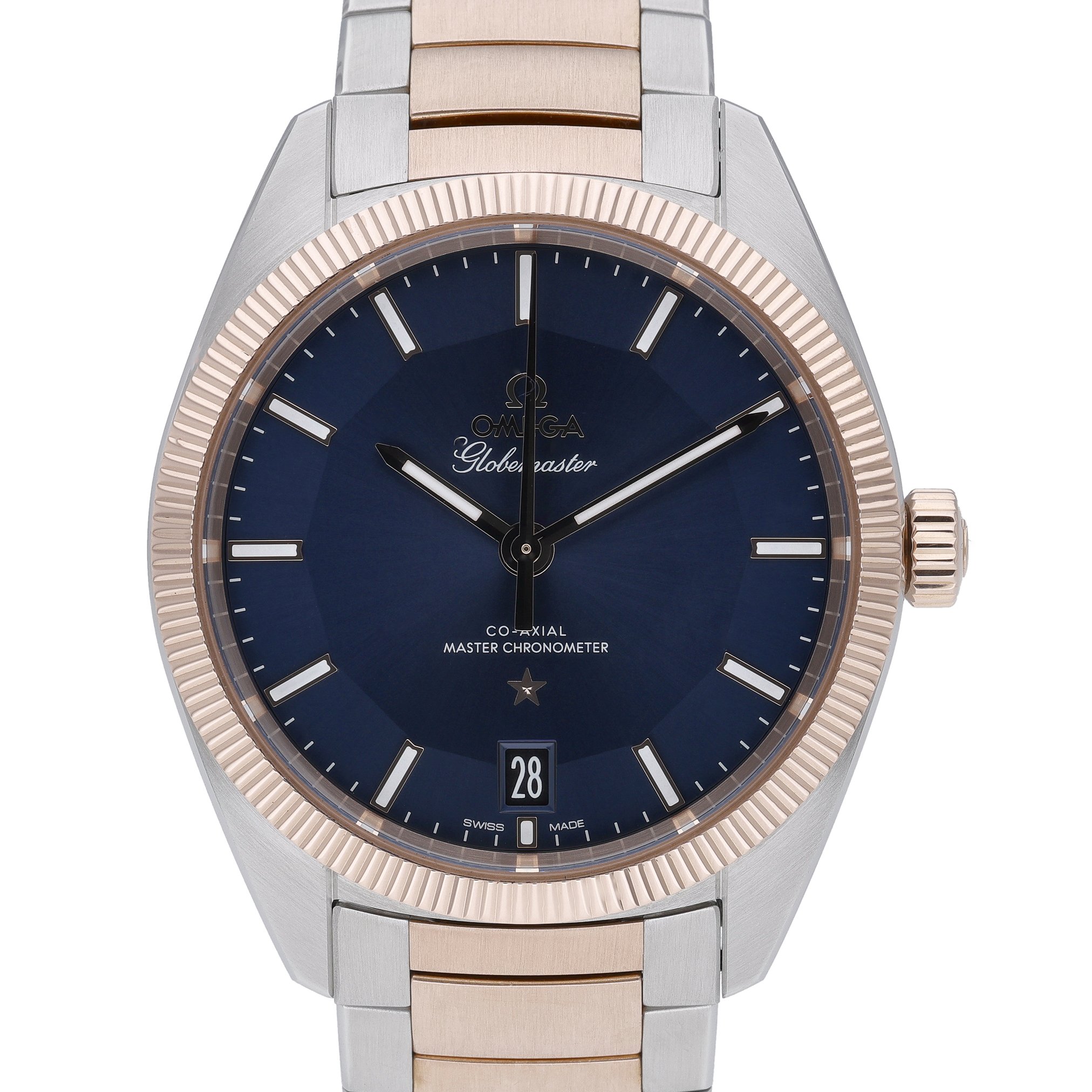 This Omega Constellation Globemaster 130.20.39.21.03.001 has a blue baton dial and a bracelet strap. This Omega has undergone a thorough inspection of accuracy, functionality and condition at our Omega certified service centre to determine the level of reconditioning required to meet our strict standards. It has also been checked against our records to ensure authenticity. All our watches have a 24-month warranty for your peace of mind.