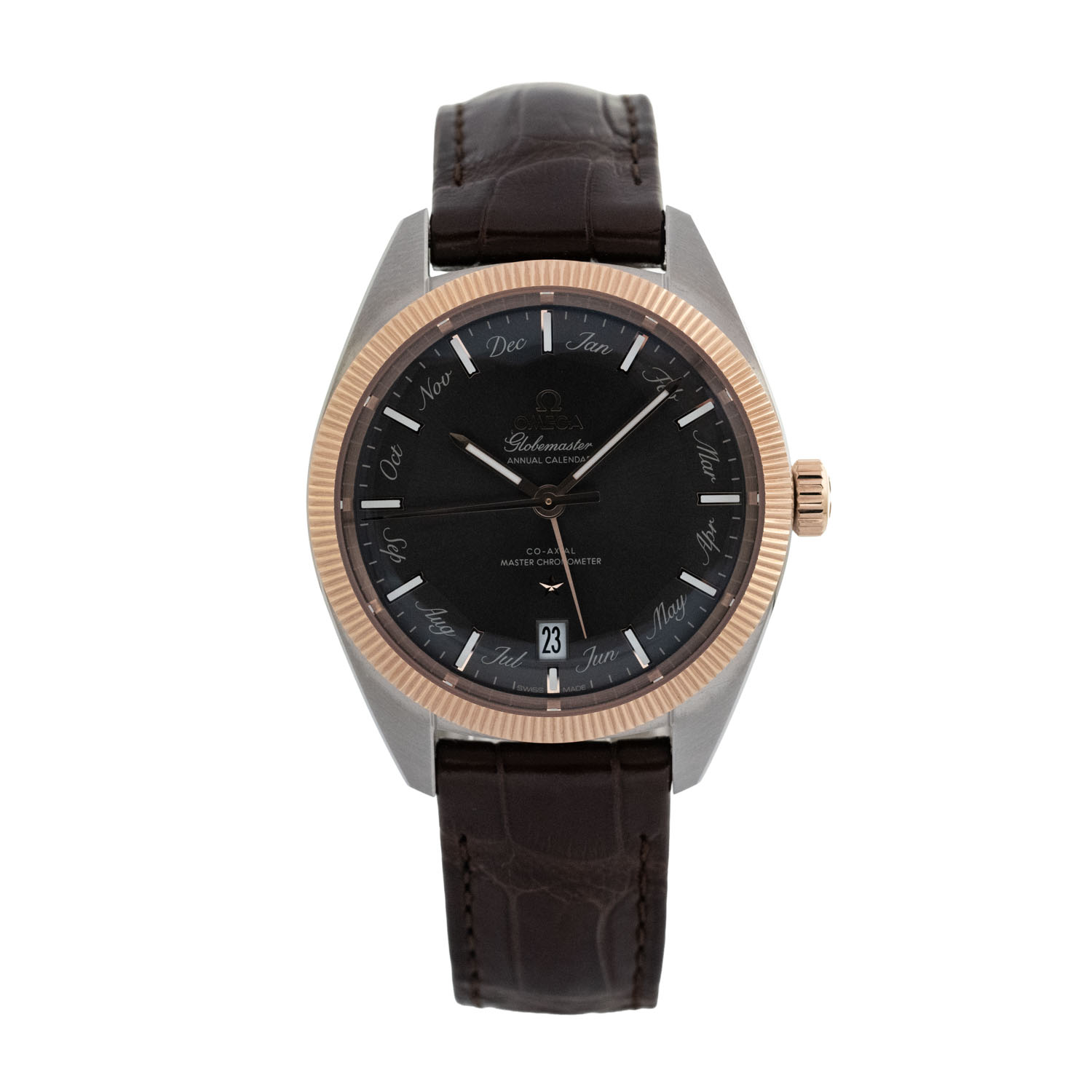 This Omega Constellation Globemaster 130.23.41.22.06.001 has a grey baton dial and a leather strap. This Omega has undergone a thorough inspection of accuracy, functionality and condition at our Omega certified service centre to determine the level of reconditioning required to meet our strict standards. It has also been checked against our records to ensure authenticity. Our watches have a 24-month warranty for your peace of mind, in conjunction with any remaining manufacturer’s warranty from new or from service.