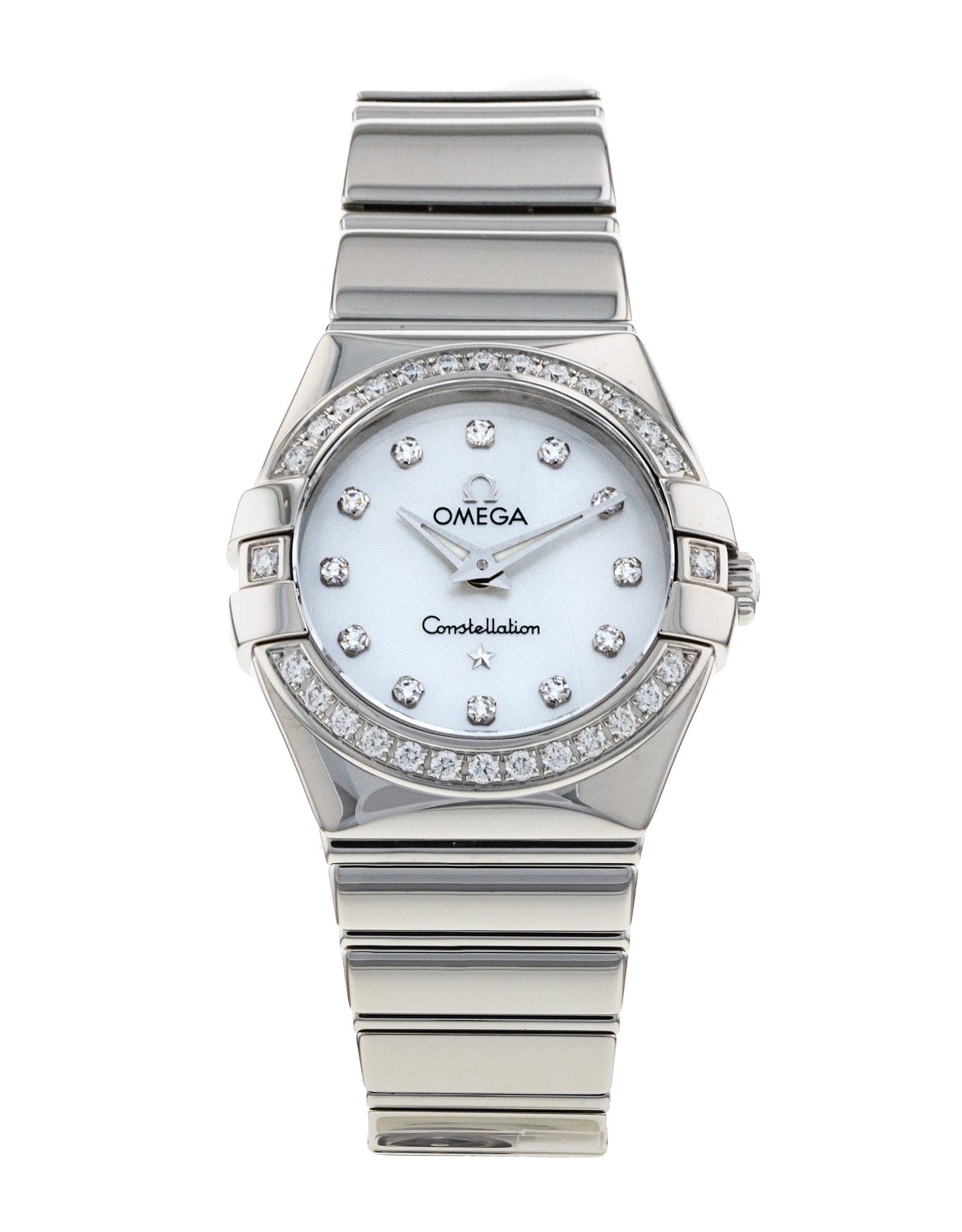 This Omega Constellation Ladies 123.15.24.60.55.003 has a mother of pearl white - diamond dial and a bracelet strap. This Omega has undergone a thorough inspection of accuracy, functionality and condition at our Omega certified service centre to determine the level of reconditioning required to meet our strict standards. It has also been checked against our records to ensure authenticity. All our watches have a 24-month warranty for your peace of mind.