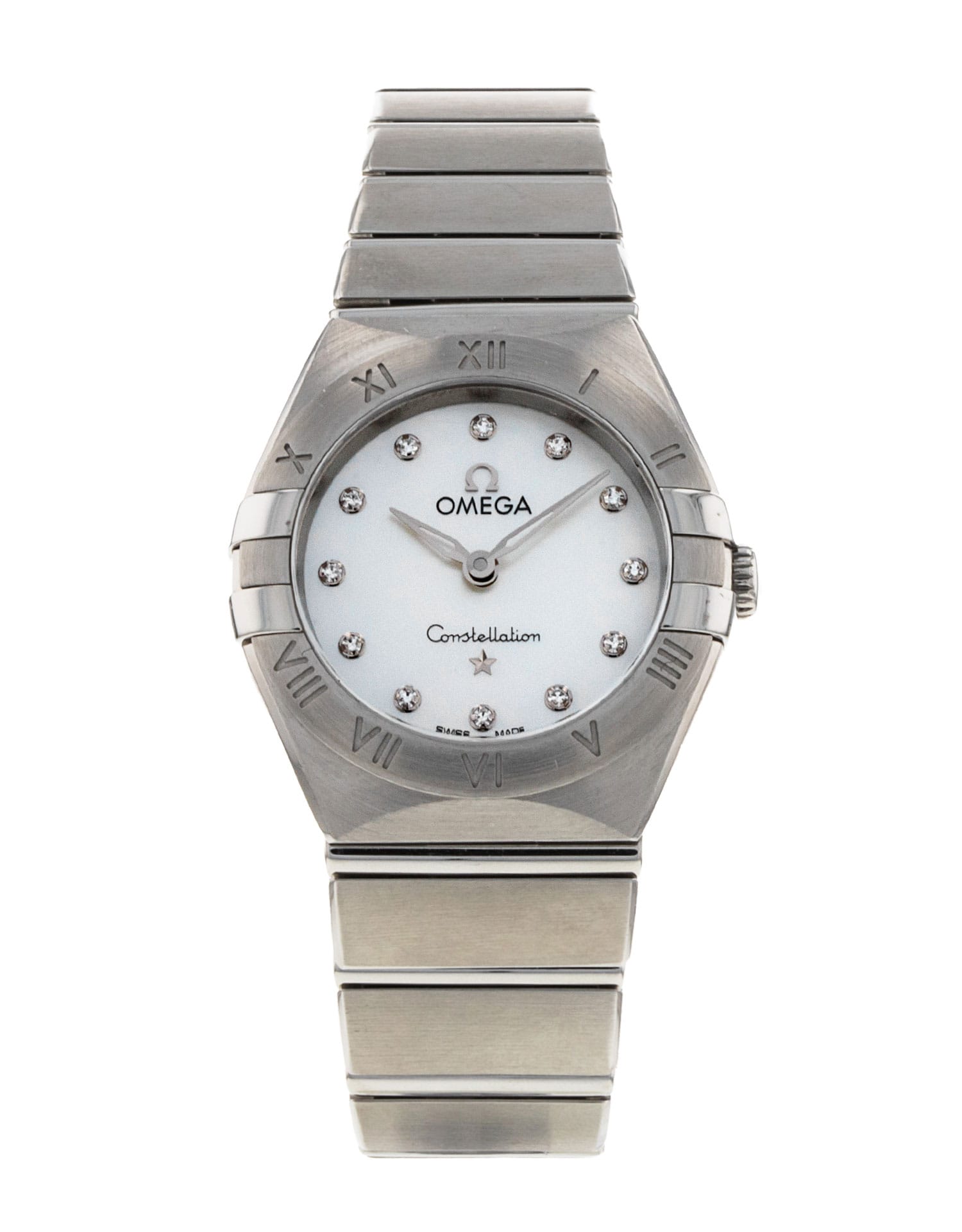 This Omega Constellation Ladies 131.10.25.60.55.001 has a mother of pearl white - diamond dial and a bracelet strap. This Omega has undergone a thorough inspection of accuracy, functionality and condition at our Omega certified service centre to determine the level of reconditioning required to meet our strict standards. It has also been checked against our records to ensure authenticity. All our watches have a 24-month warranty for your peace of mind.