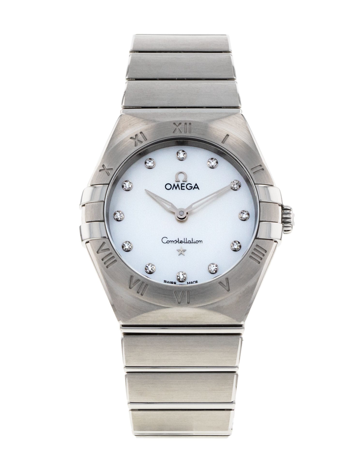 This Omega Constellation Ladies 131.10.28.60.55.001 has a mother of pearl white - diamond dial and a bracelet strap. This Omega has undergone a thorough inspection of accuracy, functionality and condition at our Omega certified service centre to determine the level of reconditioning required to meet our strict standards. It has also been checked against our records to ensure authenticity. Our watches have a 24-month warranty for your peace of mind, in conjunction with any remaining manufacturer’s warranty from new or from service.