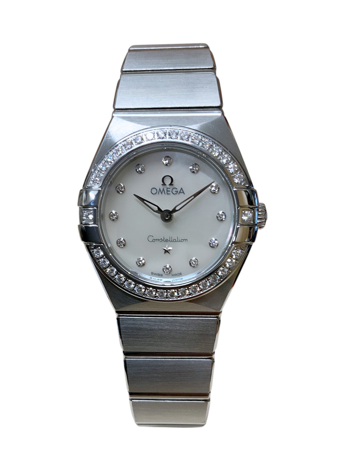 This Omega Constellation Ladies 131.15.25.60.55.001 has a mother of pearl white - diamond dial and a bracelet strap. This Omega has undergone a thorough inspection of accuracy, functionality and condition at our Omega certified service centre to determine the level of reconditioning required to meet our strict standards. It has also been checked against our records to ensure authenticity. All our watches have a 24-month warranty for your peace of mind.