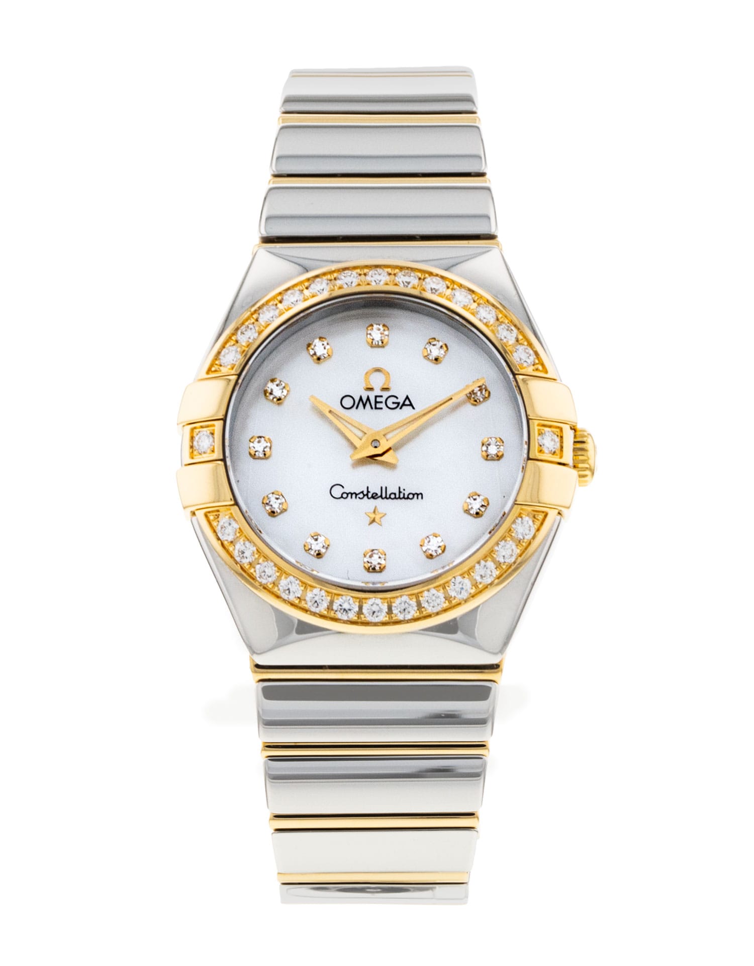 This Omega Constellation Ladies 131.25.25.60.55.002 has a mother of pearl white - diamond dial and a bracelet strap. This Omega has undergone a thorough inspection of accuracy, functionality and condition at our Omega certified service centre to determine the level of reconditioning required to meet our strict standards. It has also been checked against our records to ensure authenticity. All our watches have a 24-month warranty for your peace of mind.