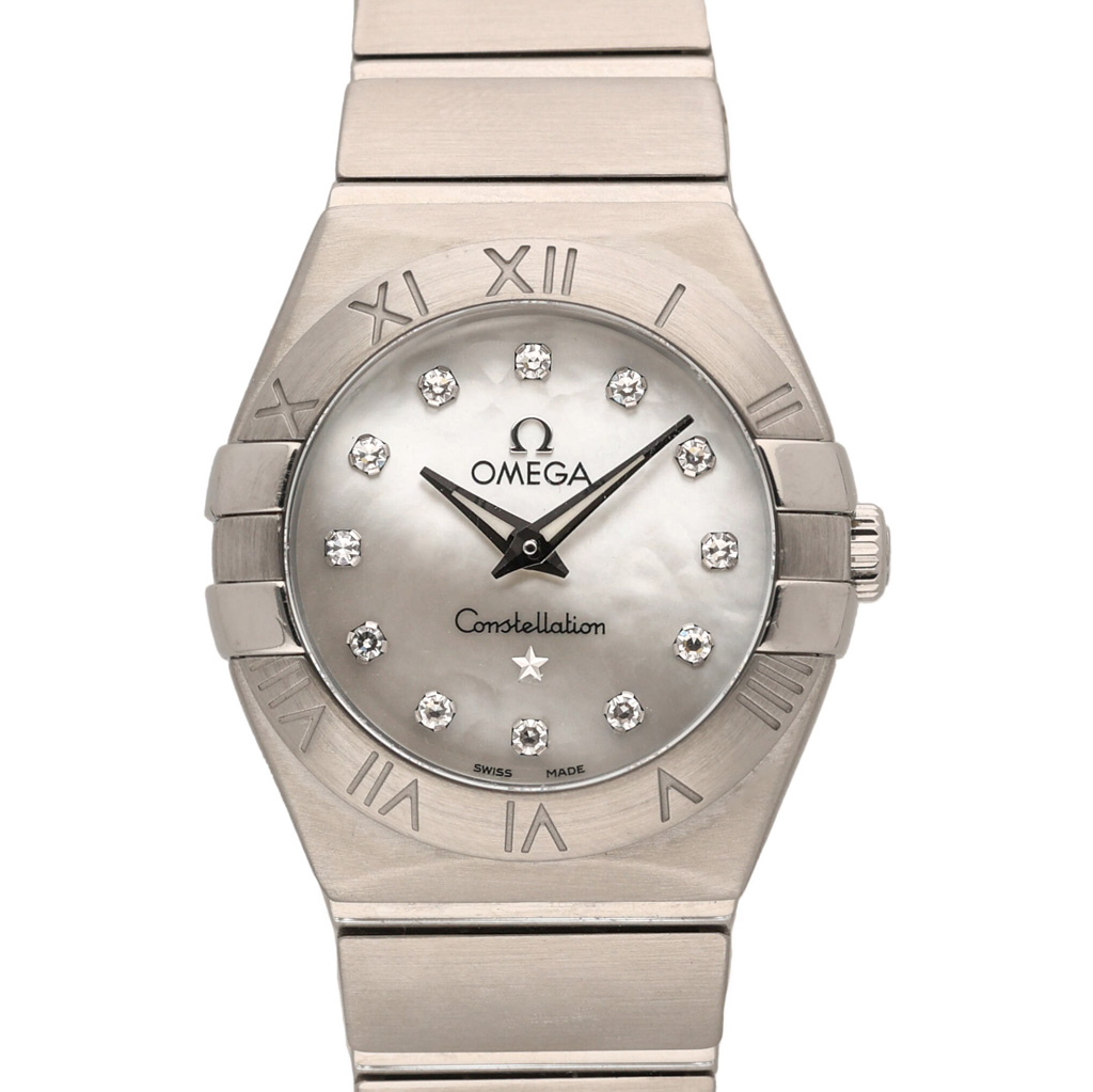 This Omega Constellation Mini 123.10.24.60.55.001 has a mother of pearl white - diamond dial and a bracelet strap. This Omega has undergone a thorough inspection of accuracy, functionality and condition at our Omega certified service centre to determine the level of reconditioning required to meet our strict standards. It has also been checked against our records to ensure authenticity. All our watches have a 24-month warranty for your peace of mind.