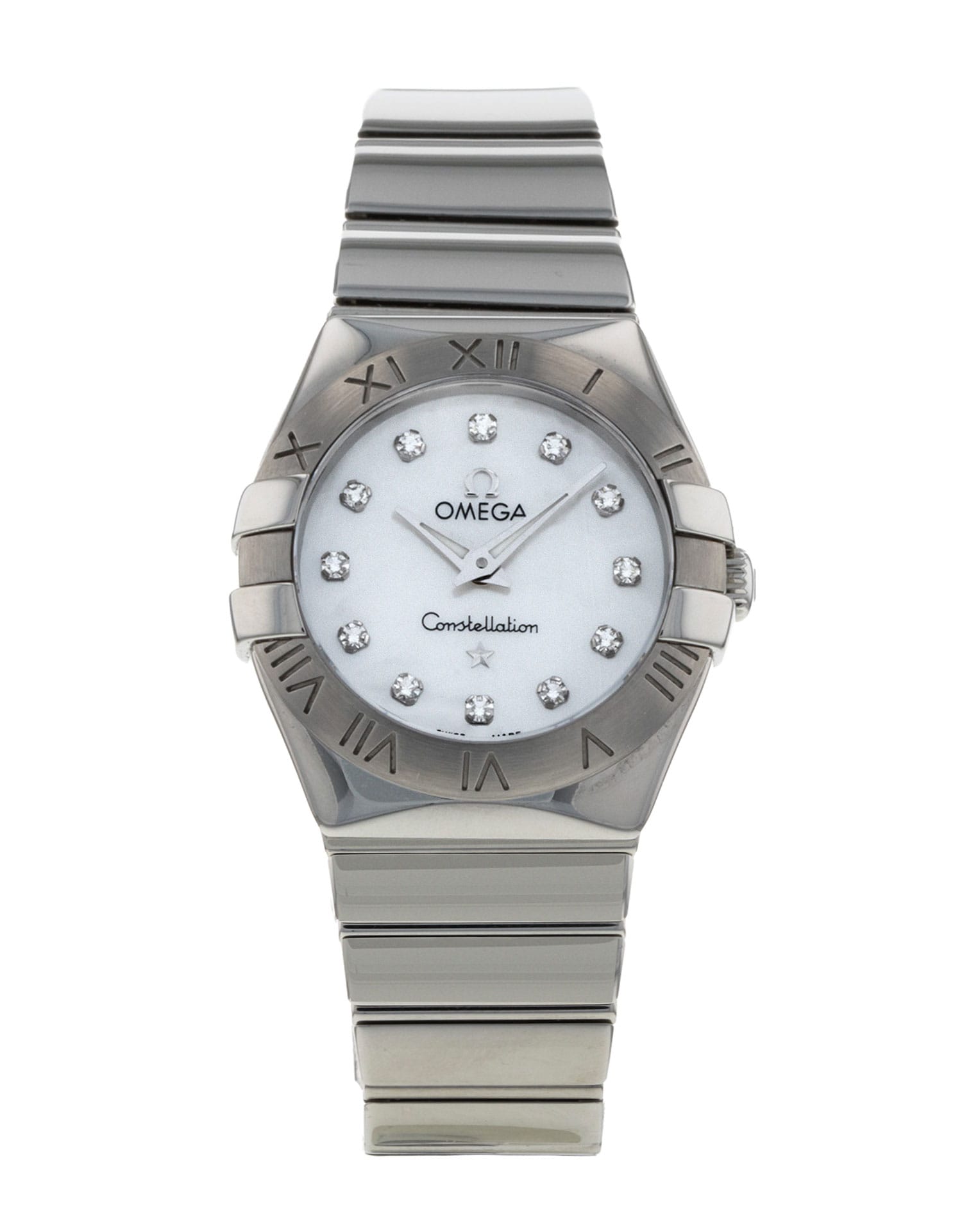 This Omega Constellation Mini 123.10.24.60.55.002 has a mother of pearl white - diamond dial and a bracelet strap. This Omega has undergone a thorough inspection of accuracy, functionality and condition at our Omega certified service centre to determine the level of reconditioning required to meet our strict standards. It has also been checked against our records to ensure authenticity. All our watches have a 24-month warranty for your peace of mind.