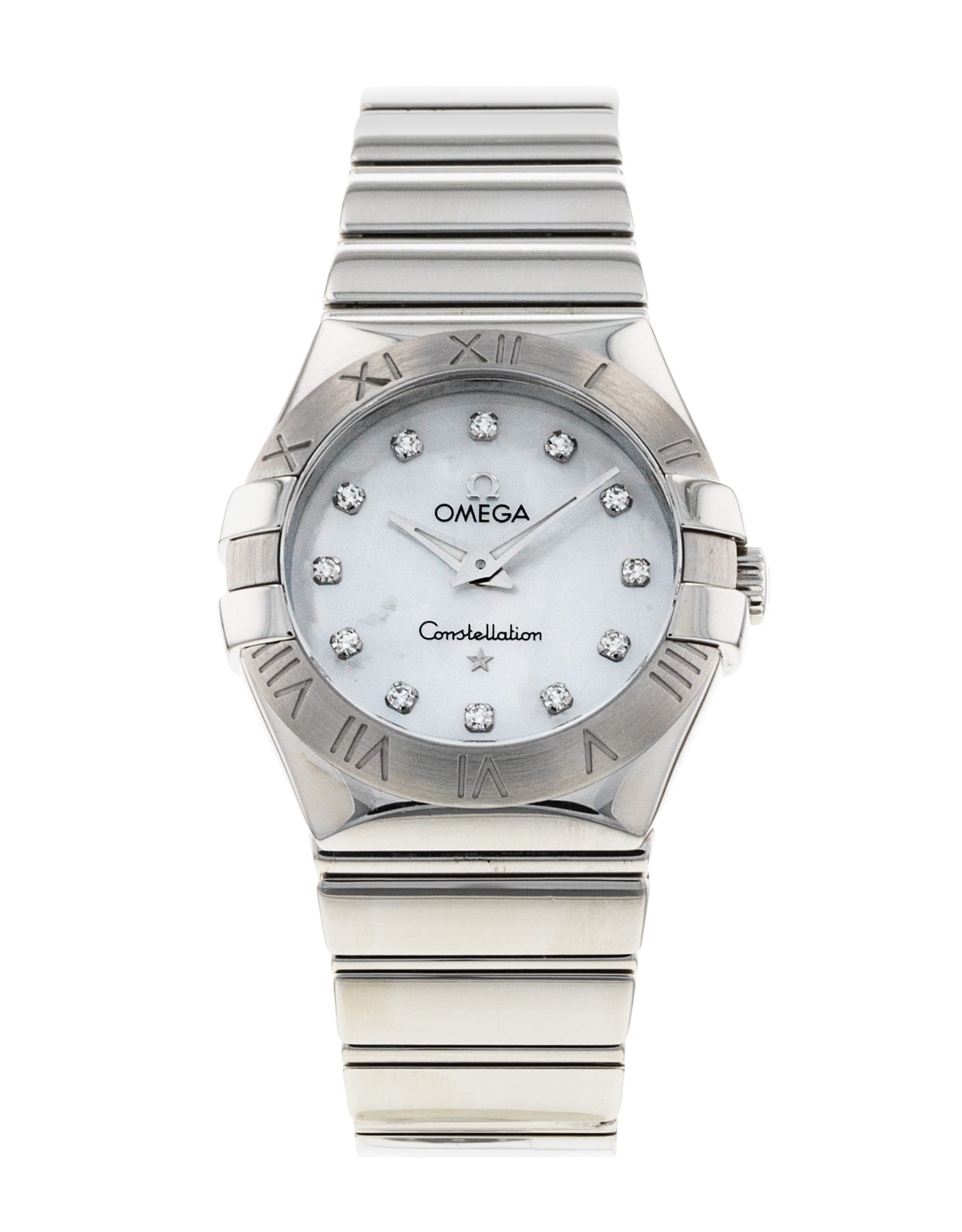 This Omega Constellation Small 123.10.27.60.55.002 has a mother of pearl white - diamond dial and a bracelet strap. This Omega has undergone a thorough inspection of accuracy, functionality and condition at our Omega certified service centre to determine the level of reconditioning required to meet our strict standards. It has also been checked against our records to ensure authenticity. All our watches have a 24-month warranty for your peace of mind.
