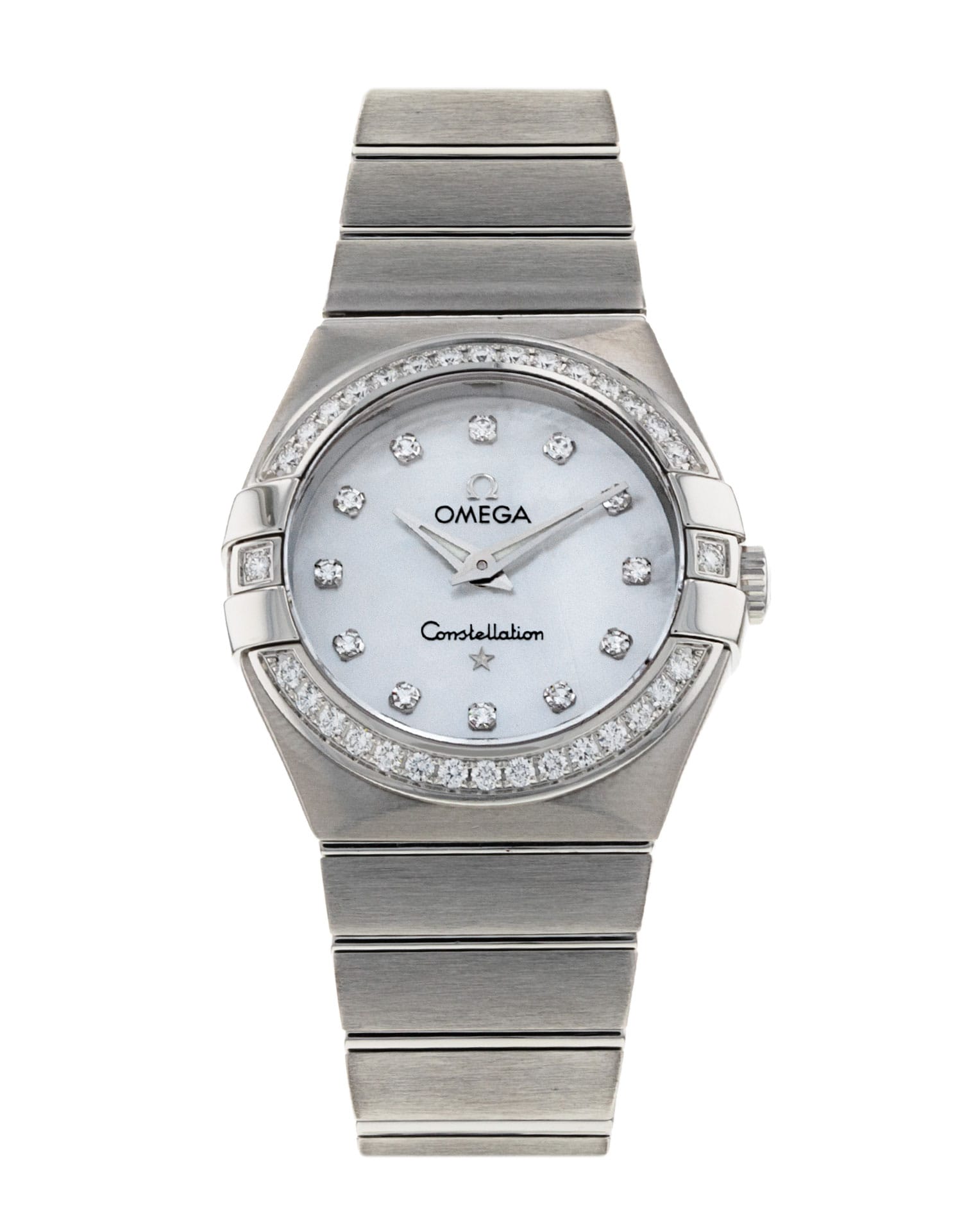 This Omega Constellation Small 123.15.27.60.55.001 has a mother of pearl white - diamond dial and a bracelet strap. This Omega has undergone a thorough inspection of accuracy, functionality and condition at our Omega certified service centre to determine the level of reconditioning required to meet our strict standards. It has also been checked against our records to ensure authenticity. All our watches have a 24-month warranty for your peace of mind.