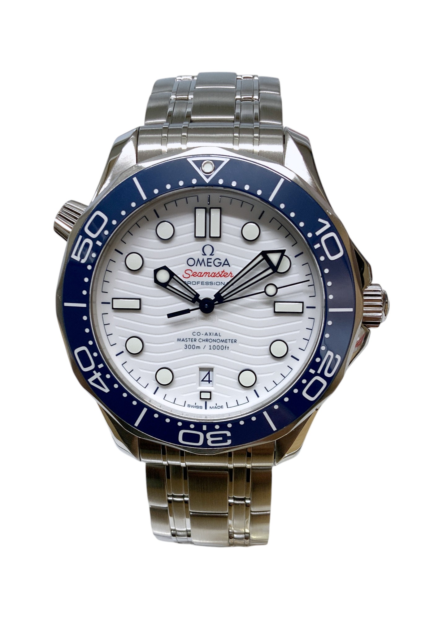 This Omega Olympic Seamaster 522.30.42.20.04.001 has a white dial and a bracelet strap. This Omega has undergone a thorough inspection of accuracy, functionality and condition at our Omega certified service centre to determine the level of reconditioning required to meet our strict standards. It has also been checked against our records to ensure authenticity. Our watches have a 24-month warranty for your peace of mind, in conjunction with any remaining manufacturer’s warranty from new or from service.