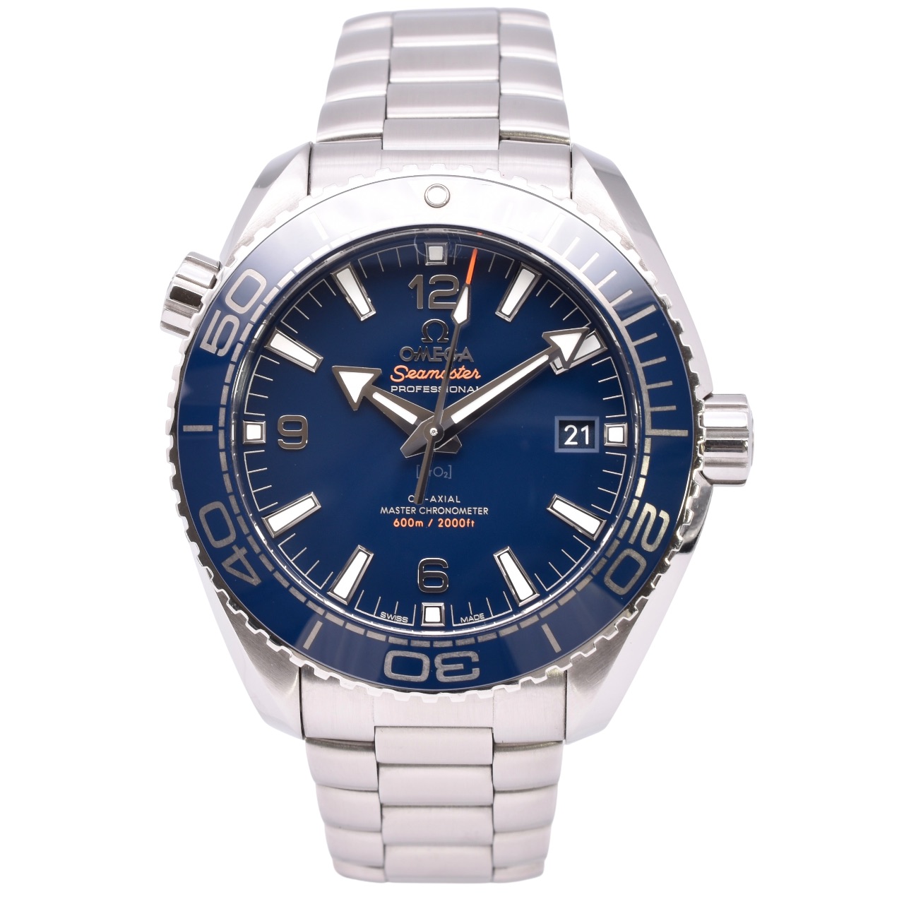 This Omega Planet Ocean 215.30.44.21.03.001 has a blue quarter arabic dial and a bracelet strap. This Omega has undergone a thorough inspection of accuracy, functionality and condition at our Omega certified service centre to determine the level of reconditioning required to meet our strict standards. It has also been checked against our records to ensure authenticity. All our watches have a 24-month warranty for your peace of mind.