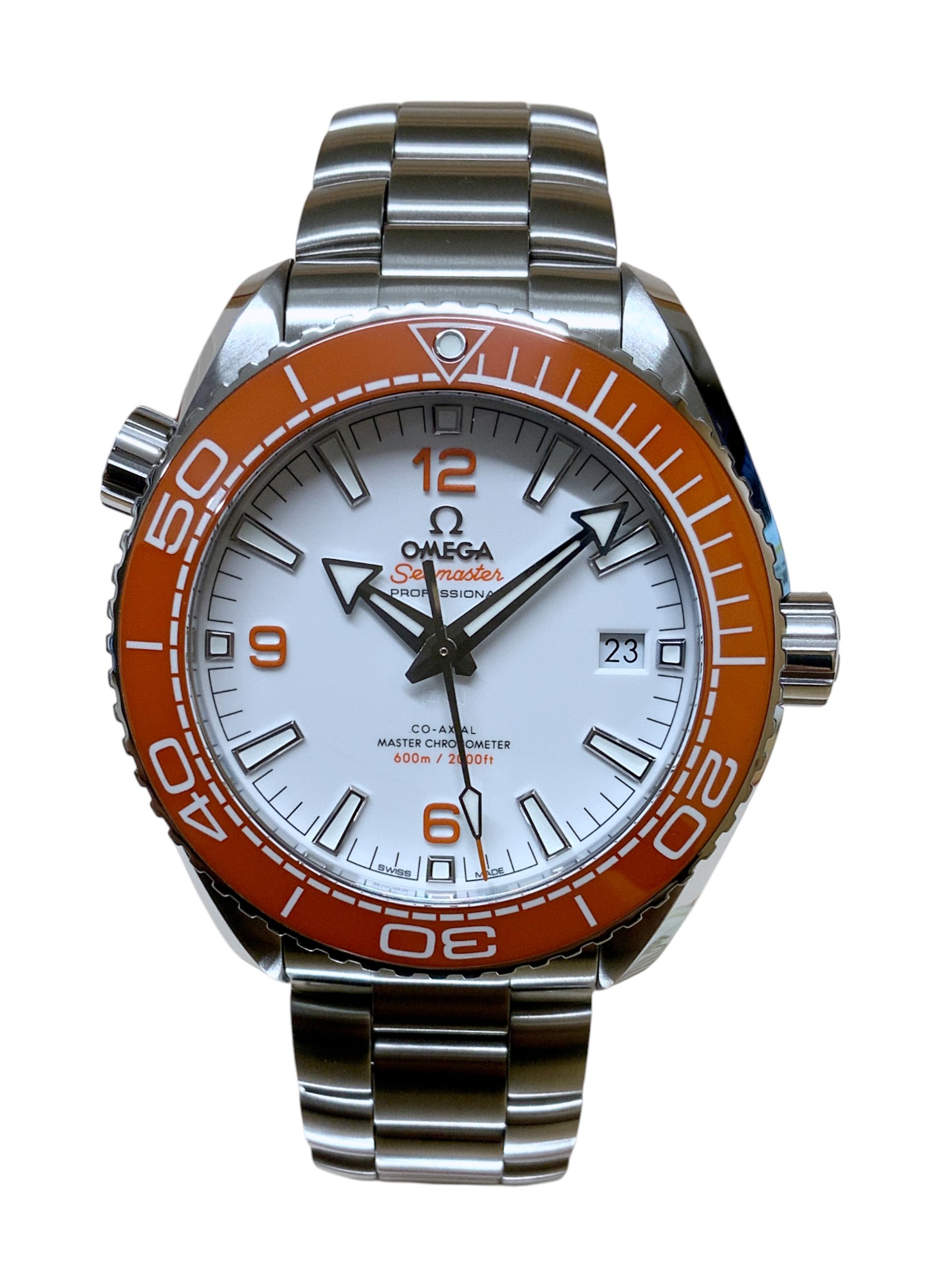 This Omega Planet Ocean 215.30.44.21.04.001 has a white quarter arabic dial and a bracelet strap. This Omega has undergone a thorough inspection of accuracy, functionality and condition at our Omega certified service centre to determine the level of reconditioning required to meet our strict standards. It has also been checked against our records to ensure authenticity. Our watches have a 24-month warranty for your peace of mind, in conjunction with any remaining manufacturer’s warranty from new or from service.