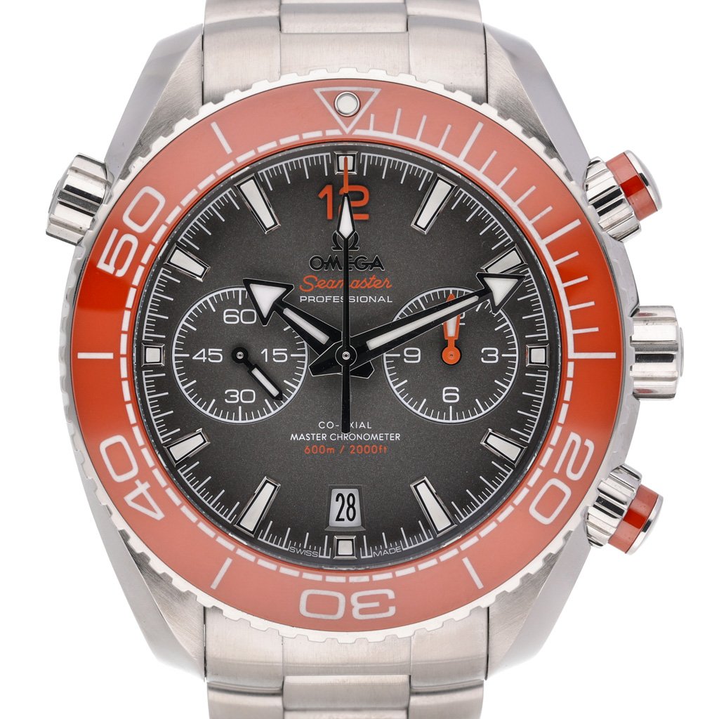 This Omega Planet Ocean 215.30.46.51.99.001 has a grey baton dial and a bracelet strap. This Omega has undergone a thorough inspection of accuracy, functionality and condition at our Omega certified service centre to determine the level of reconditioning required to meet our strict standards. It has also been checked against our records to ensure authenticity. Our watches have a 24-month warranty for your peace of mind, in conjunction with any remaining manufacturer’s warranty from new or from service.