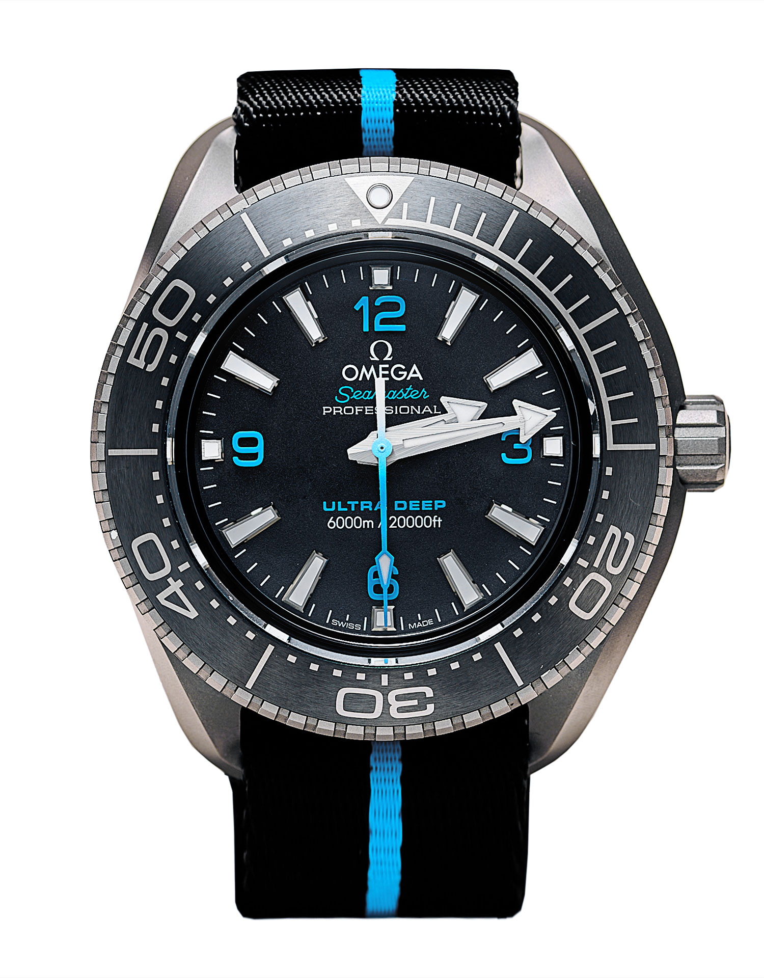 This Omega Planet Ocean 215.92.46.21.01.001 has a black quarter arabic dial and a fabric strap. This Omega has undergone a thorough inspection of accuracy, functionality and condition at our Omega certified service centre to determine the level of reconditioning required to meet our strict standards. It has also been checked against our records to ensure authenticity. Our watches have a 24-month warranty for your peace of mind, in conjunction with any remaining manufacturer’s warranty from new or from service.