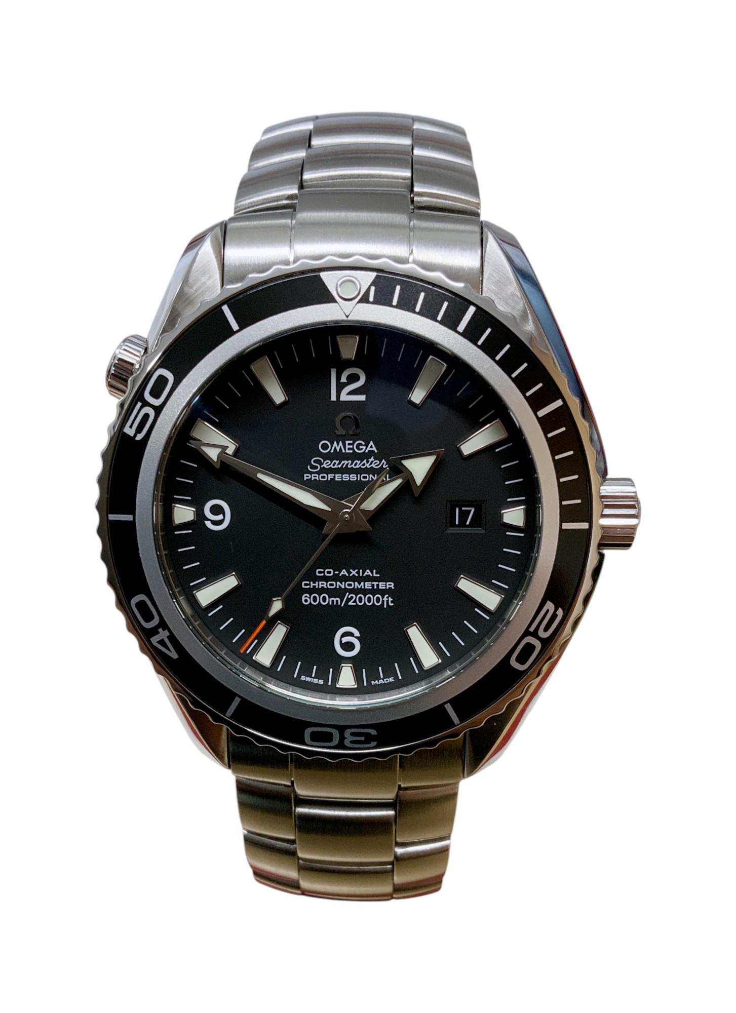 This Omega Planet Ocean 2200.50.00 has a black quarter arabic dial and a bracelet strap. This Omega has undergone a thorough inspection of accuracy, functionality and condition at our Omega certified service centre to determine the level of reconditioning required to meet our strict standards. It has also been checked against our records to ensure authenticity. Our watches have a 24-month warranty for your peace of mind, in conjunction with any remaining manufacturer’s warranty from new or from service.