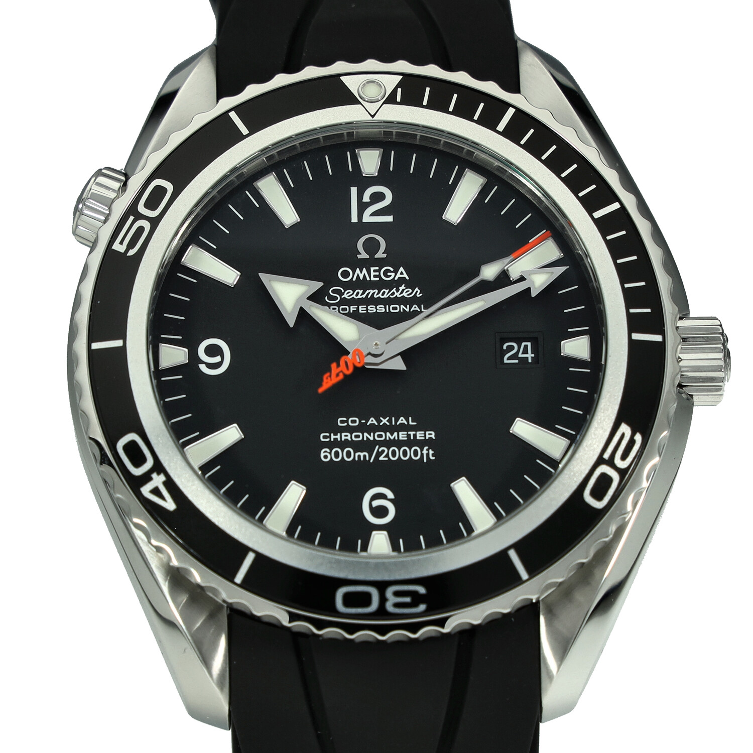 This Omega Planet Ocean 2907.50.91 has a black quarter arabic dial and a rubber strap. This Omega has undergone a thorough inspection of accuracy, functionality and condition at our Omega certified service centre to determine the level of reconditioning required to meet our strict standards. It has also been checked against our records to ensure authenticity. All our watches have a 24-month warranty for your peace of mind.