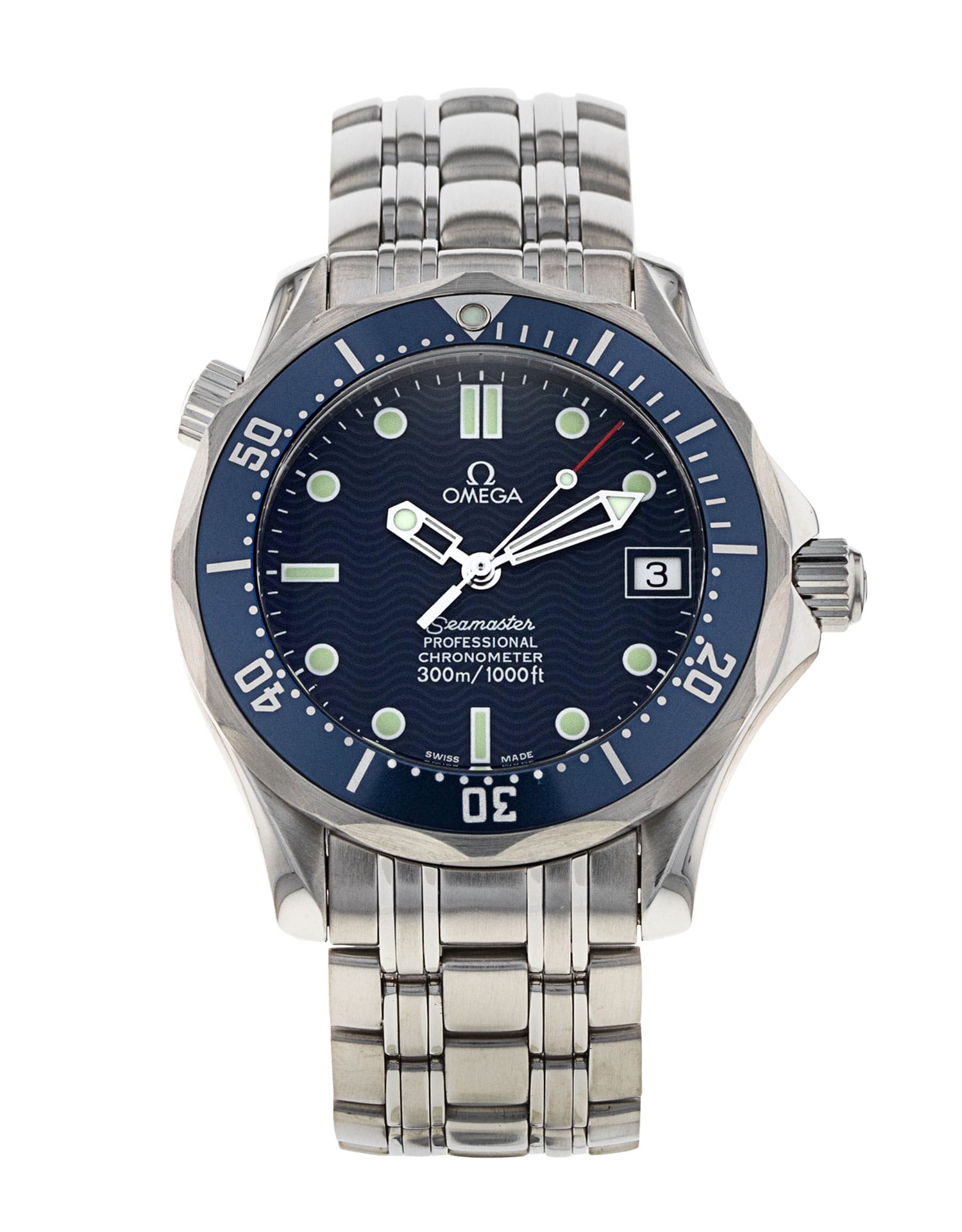 This Omega Seamaster 300m Mid-Size 2551.80.00 has a blue dial and a bracelet strap. This Omega has undergone a thorough inspection of accuracy, functionality and condition at our Omega certified service centre to determine the level of reconditioning required to meet our strict standards. It has also been checked against our records to ensure authenticity. All our watches have a 24-month warranty for your peace of mind.