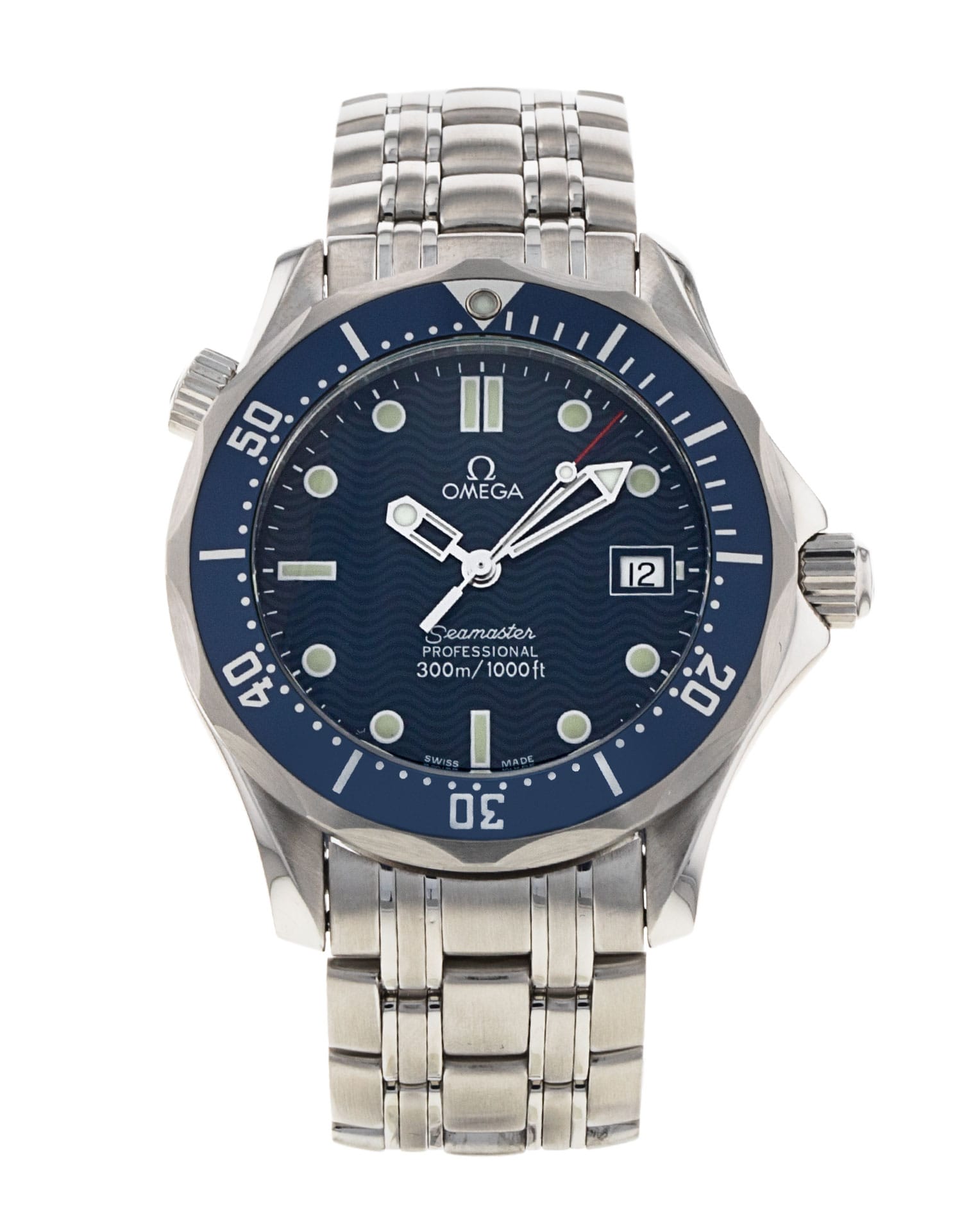 This Omega Seamaster 300m Mid-Size 2561.80.00 has a blue dial and a bracelet strap. This Omega has undergone a thorough inspection of accuracy, functionality and condition at our Omega certified service centre to determine the level of reconditioning required to meet our strict standards. It has also been checked against our records to ensure authenticity. All our watches have a 24-month warranty for your peace of mind.