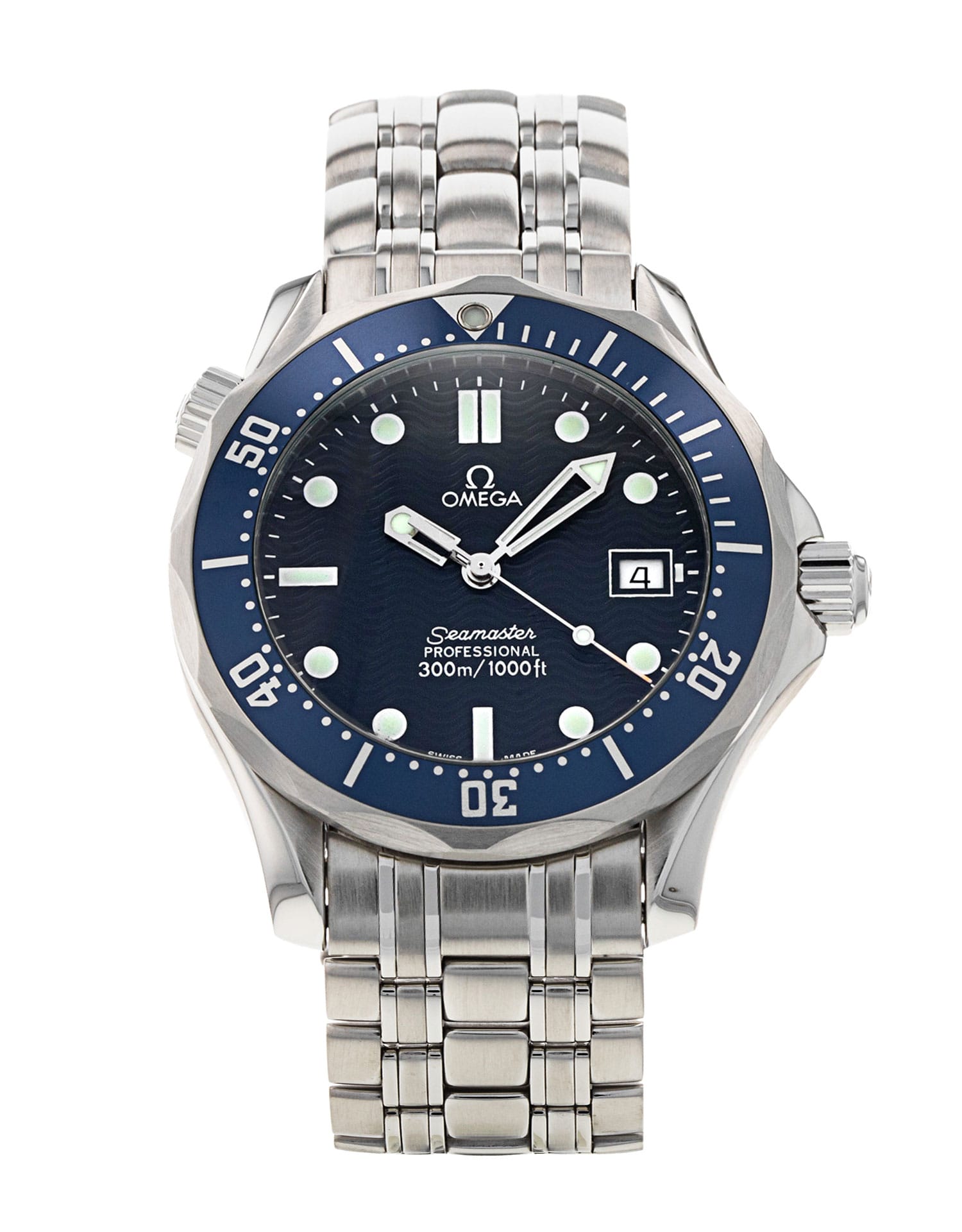 This Omega Seamaster 300m Mid-Size 2561.80.00 has a blue dial and a bracelet strap. This Omega has undergone a thorough inspection of accuracy, functionality and condition at our Omega certified service centre to determine the level of reconditioning required to meet our strict standards. It has also been checked against our records to ensure authenticity. All our watches have a 24-month warranty for your peace of mind.